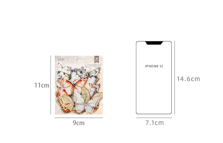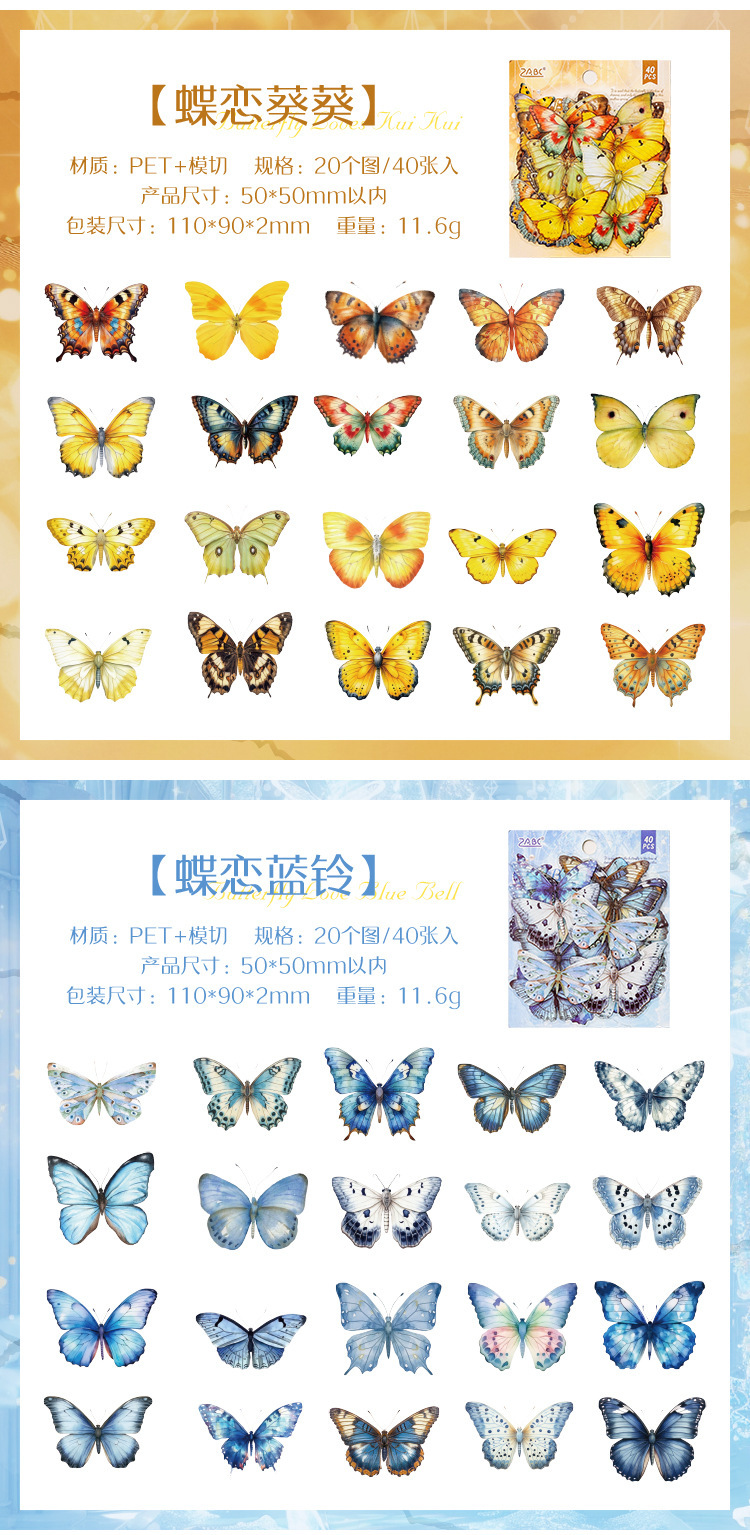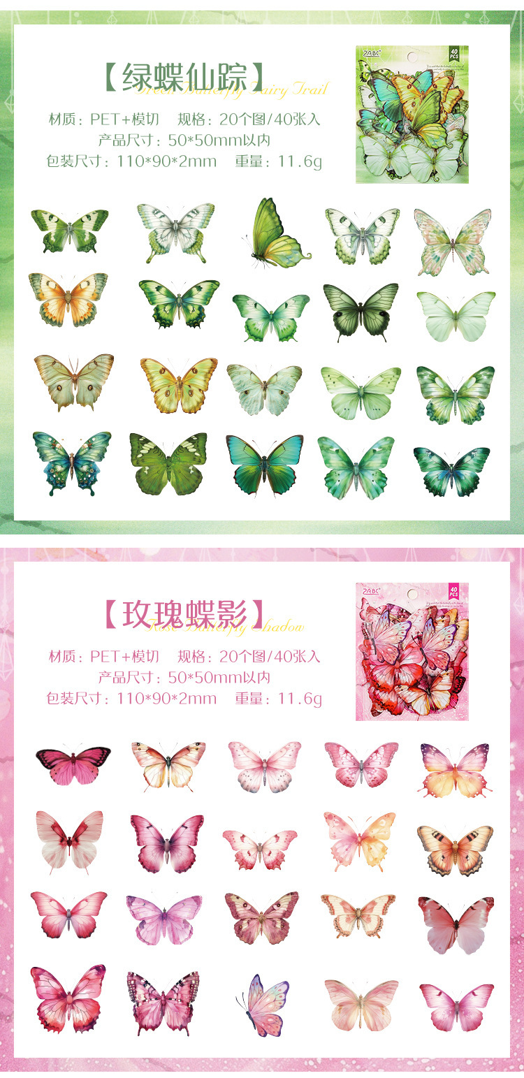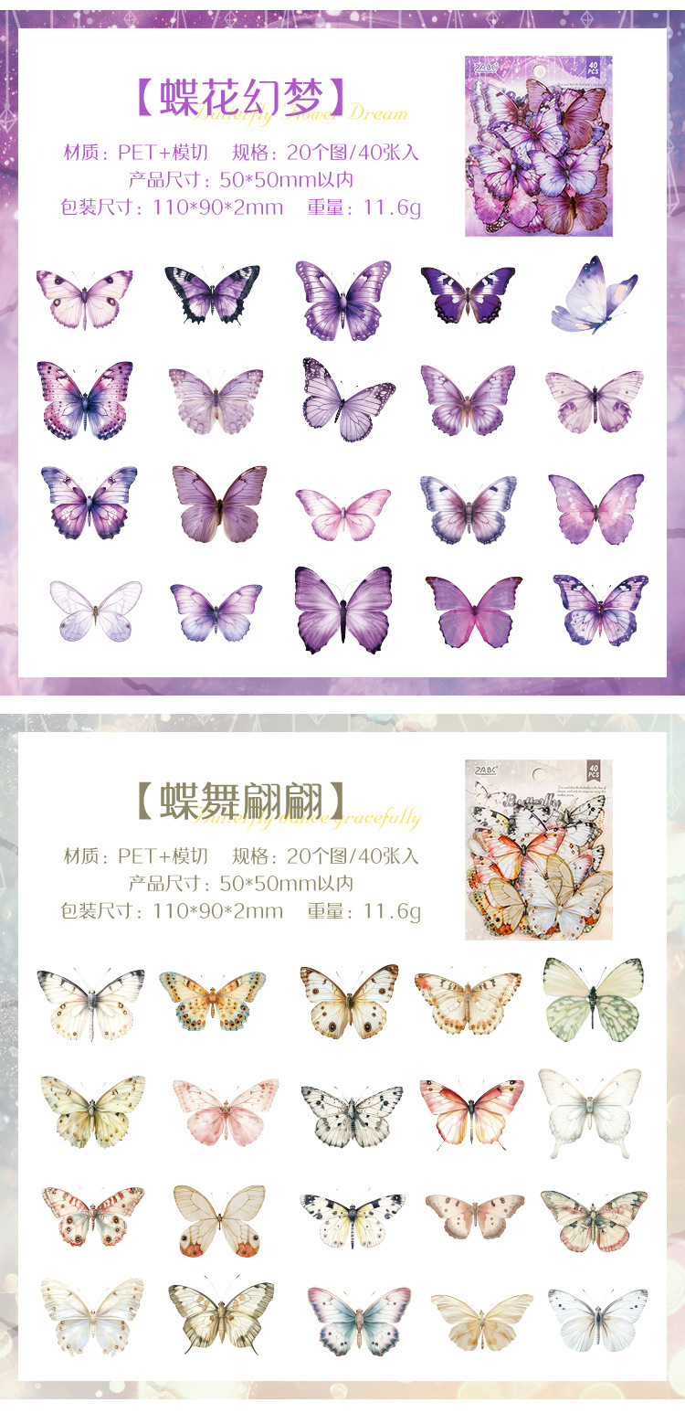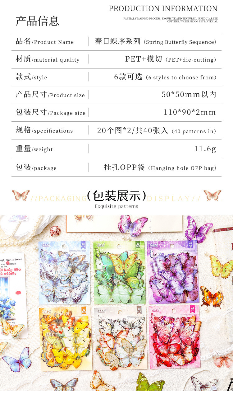 ZABC ステッカーパック 春の蝶シリーズ 蝶をテーマにしたハンドブック装飾素材ステッカー 6種類から40枚入り