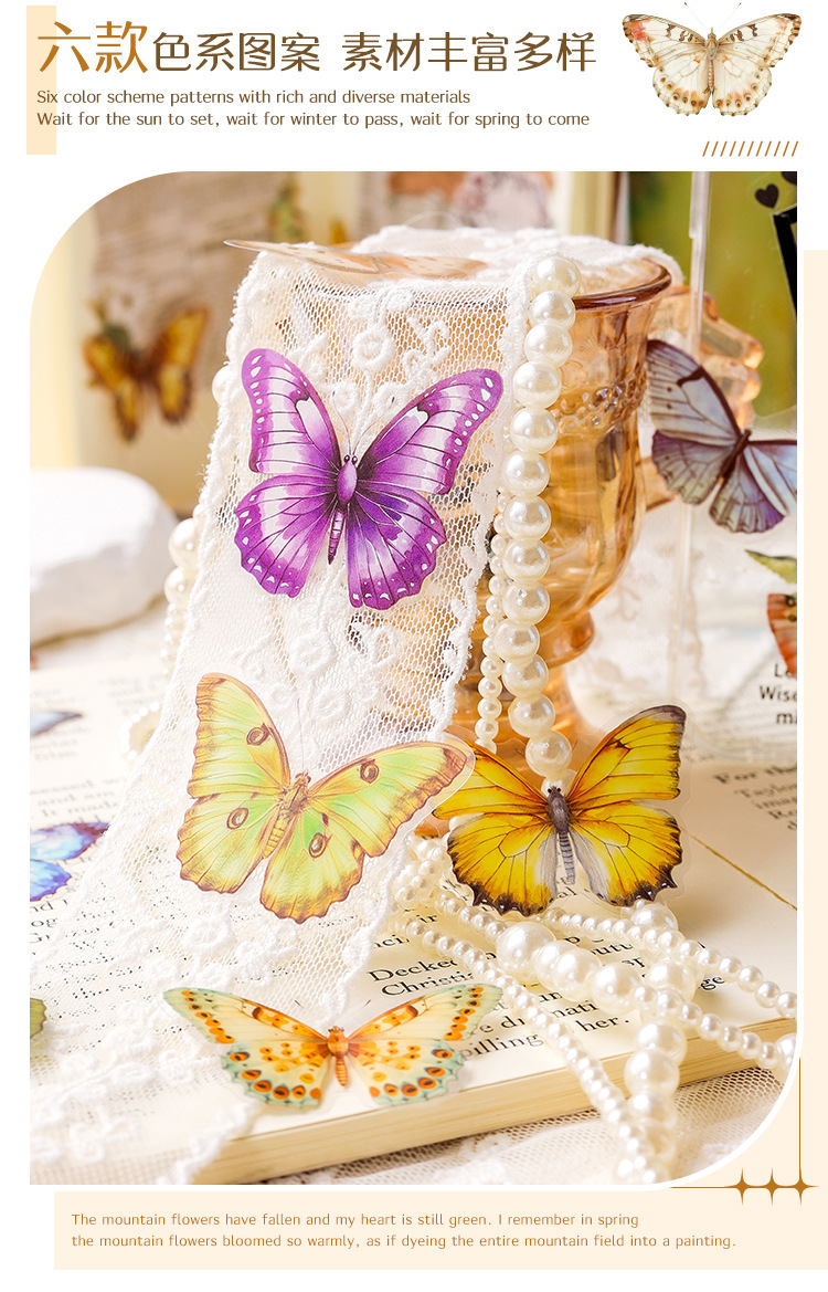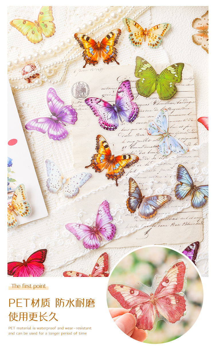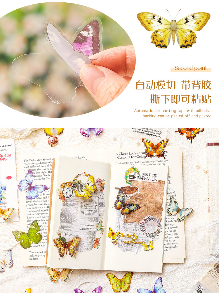 春の蝶のシーケンス透明防水ペットステッカーパック diy ハンドブック日記ステッカークロスボーダーレトロシミュレーション蝶ステッカー