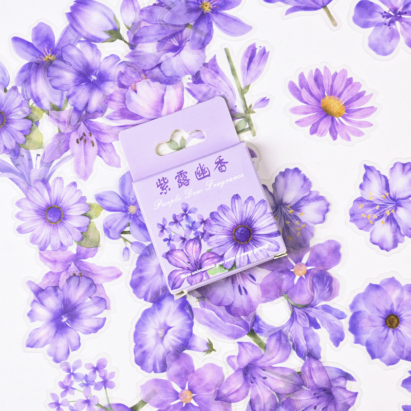 紫露幽香盒装贴纸植物花卉高颜值ins文艺手帐素材手机水杯diy贴画
