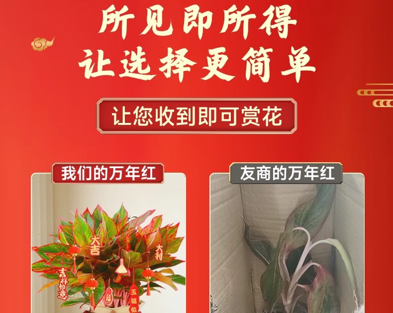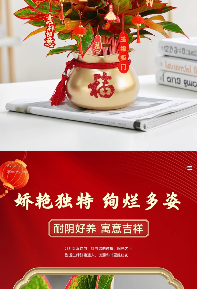 大型鉢万年赤鉢植え吉利赤如意緑植物屋内四季花植物オーキアム景徳鎮