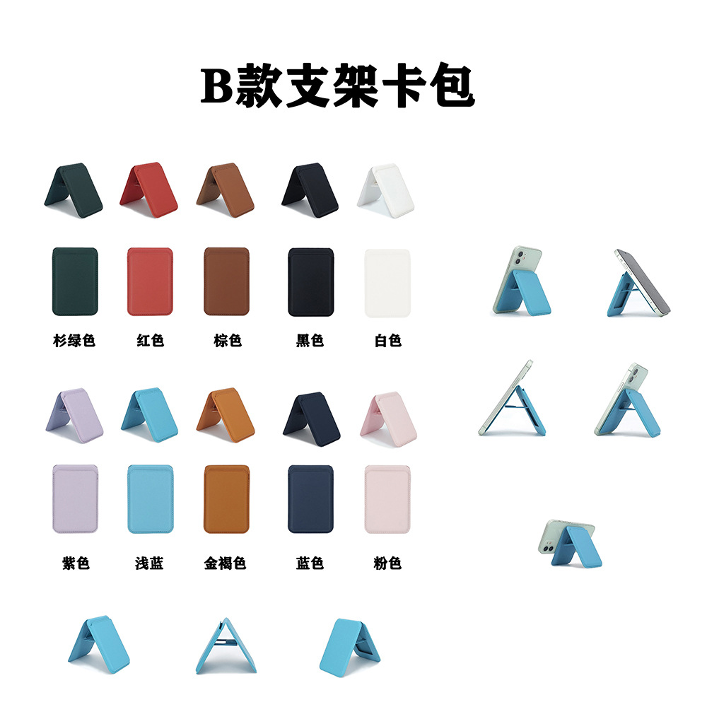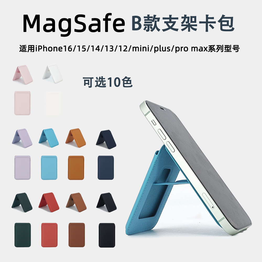 Magsafe强磁吸适用iPhone16pro苹果手机B款支架卡包夹跨境PU卡套