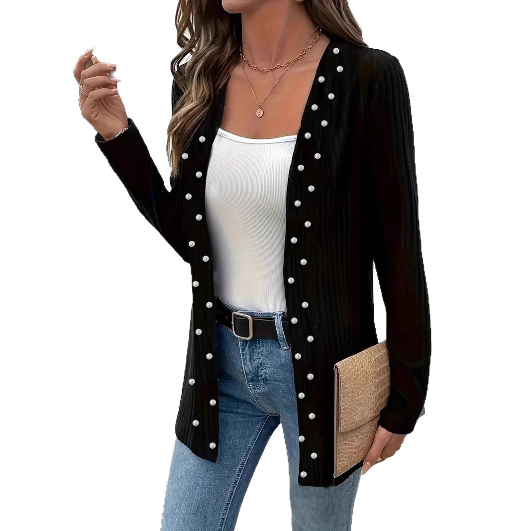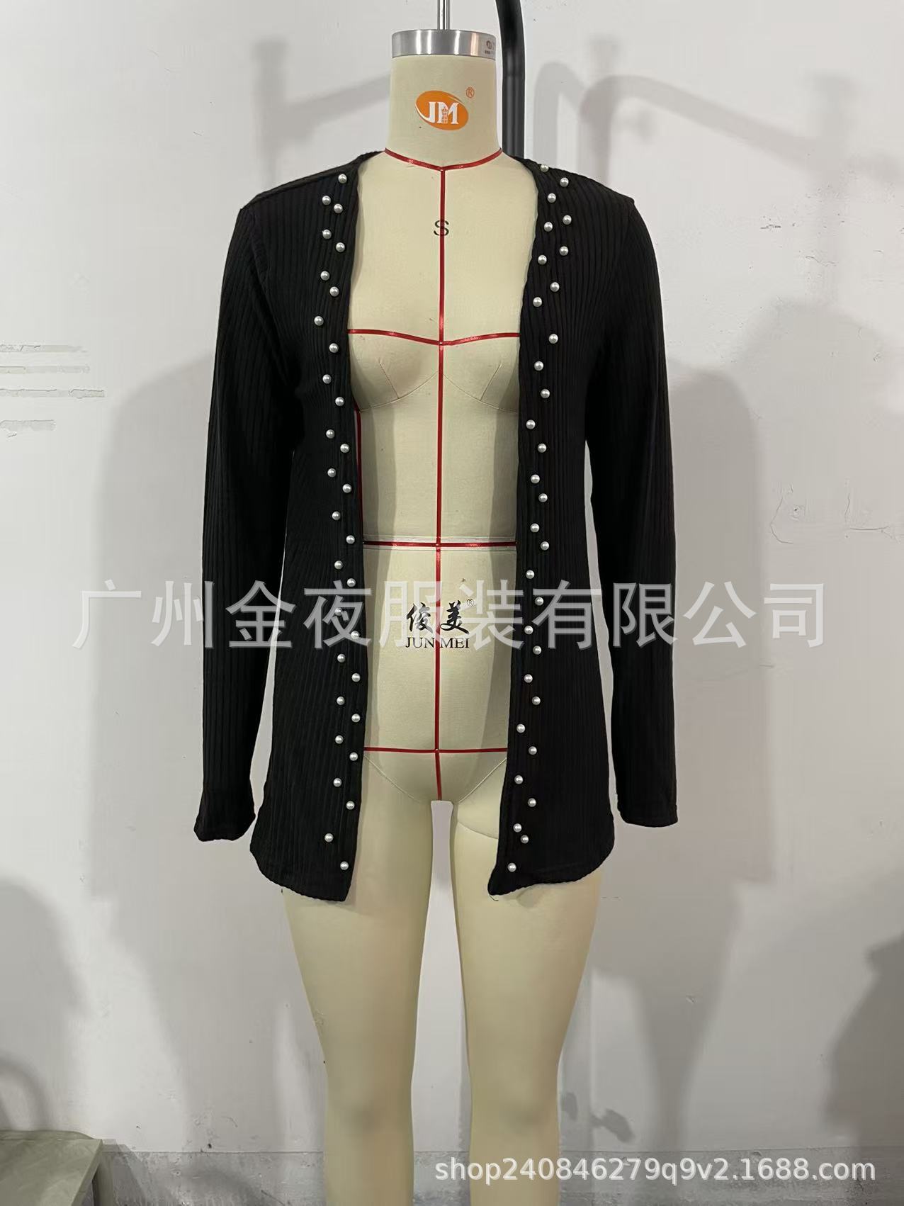欧美跨境外贸女装优雅时尚气质通勤钉珠重工针织外套披风夹克百搭
