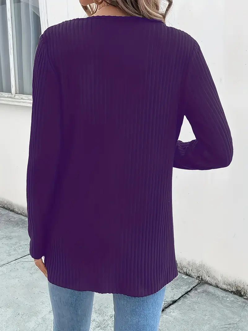 欧米越境2025年アマゾン大きいサイズレディース秋冬ラウンドネックパフスリーブ長袖無地Tシャツ女性特大サイズ