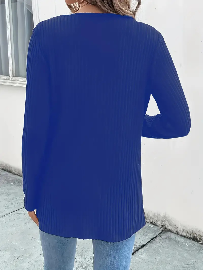 欧米越境貿易婦人服アマゾン秋冬Vネック配色ストライプゆったりジッパー長袖Tシャツセーター