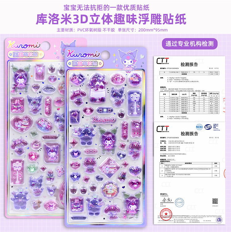 サンリオクロミ3d立体レリーフステッカー子供女の子kuromiクーロミコカ装飾ドリルステッカー