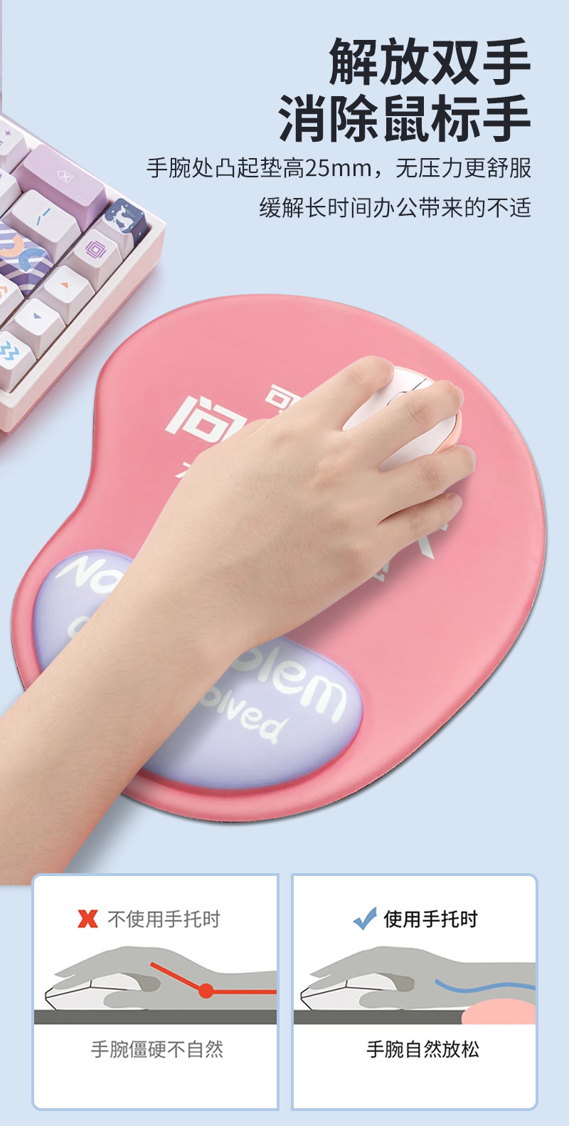 硅胶护腕鼠标垫文字高颜值手枕手托办公防滑柔软Q弹手腕垫可定制