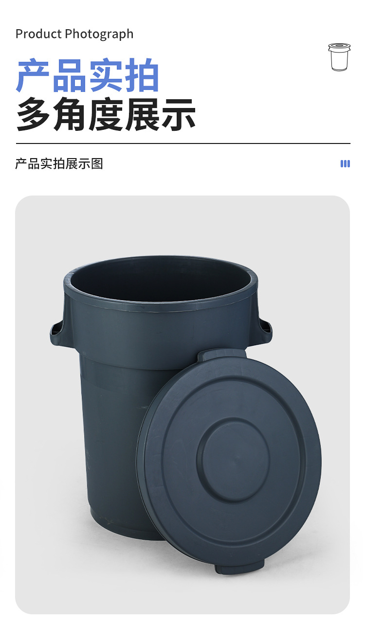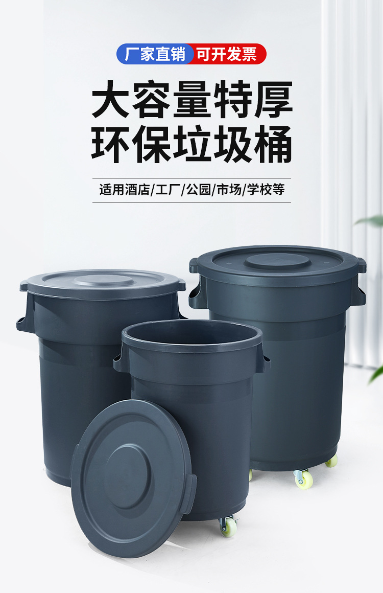 灰色大号圆形垃圾桶户外大容量环卫桶餐厨商用垃圾桶带轮子圆桶