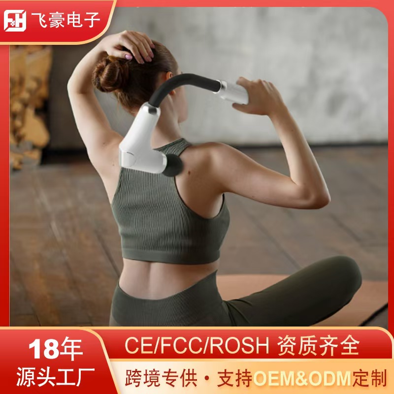 可拆卸手持长柄弯头筋膜枪家用多功能肌肉放松按摩器智能筋膜枪