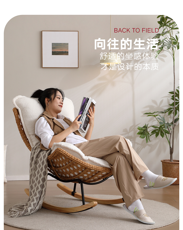 摇摇椅客厅阳台休闲人椅庭院花园藤编椅子懒人田园风午睡躺椅