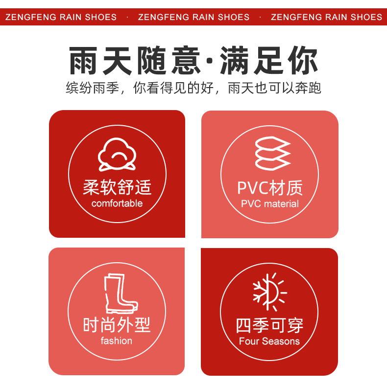 时尚雨鞋女款橡胶鞋防滑耐磨厨房长筒水靴中筒水鞋雨靴女高筒批发