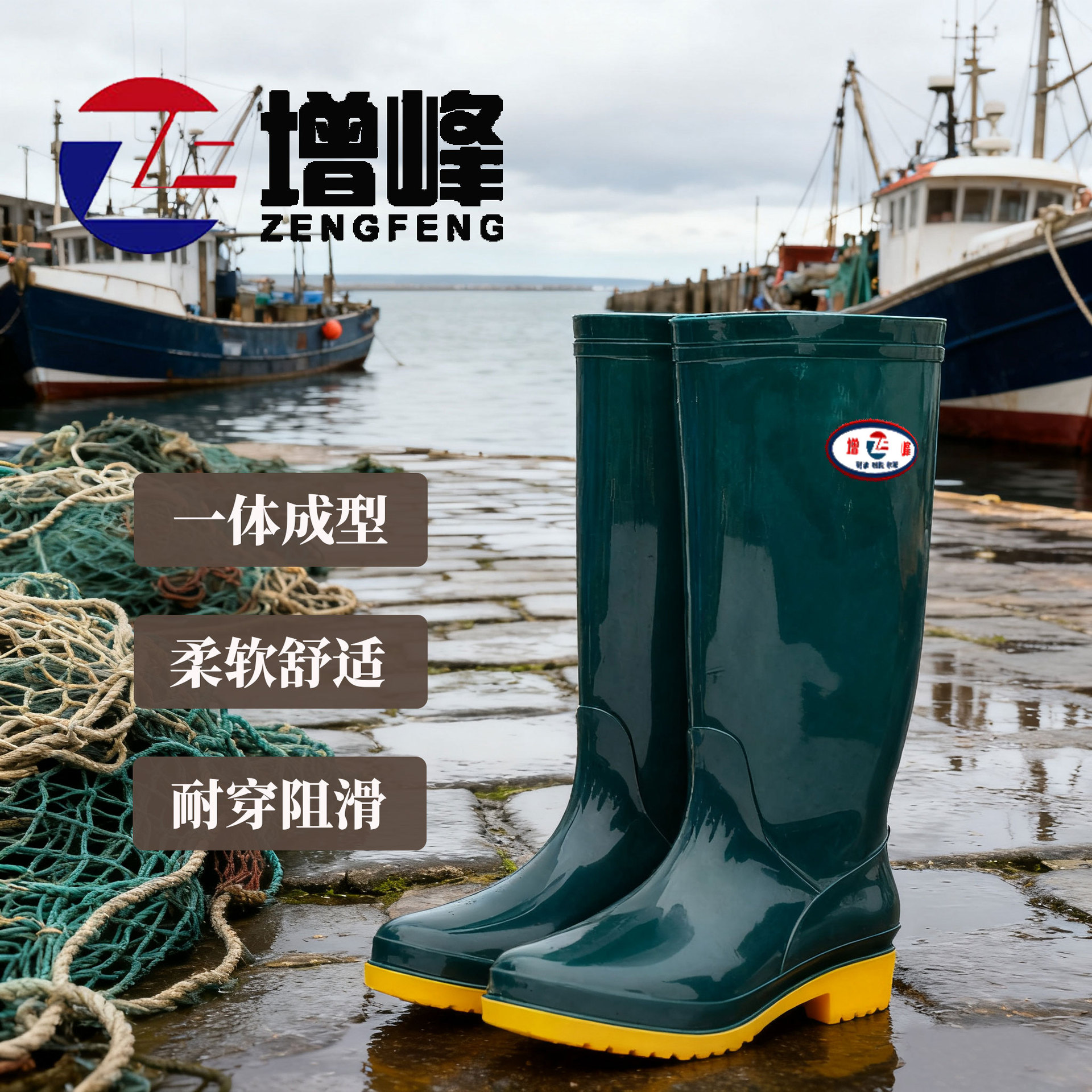 增峰雨靴男士雨鞋加厚工地劳保防滑耐磨PVC牛筋底钓鱼水鞋批发