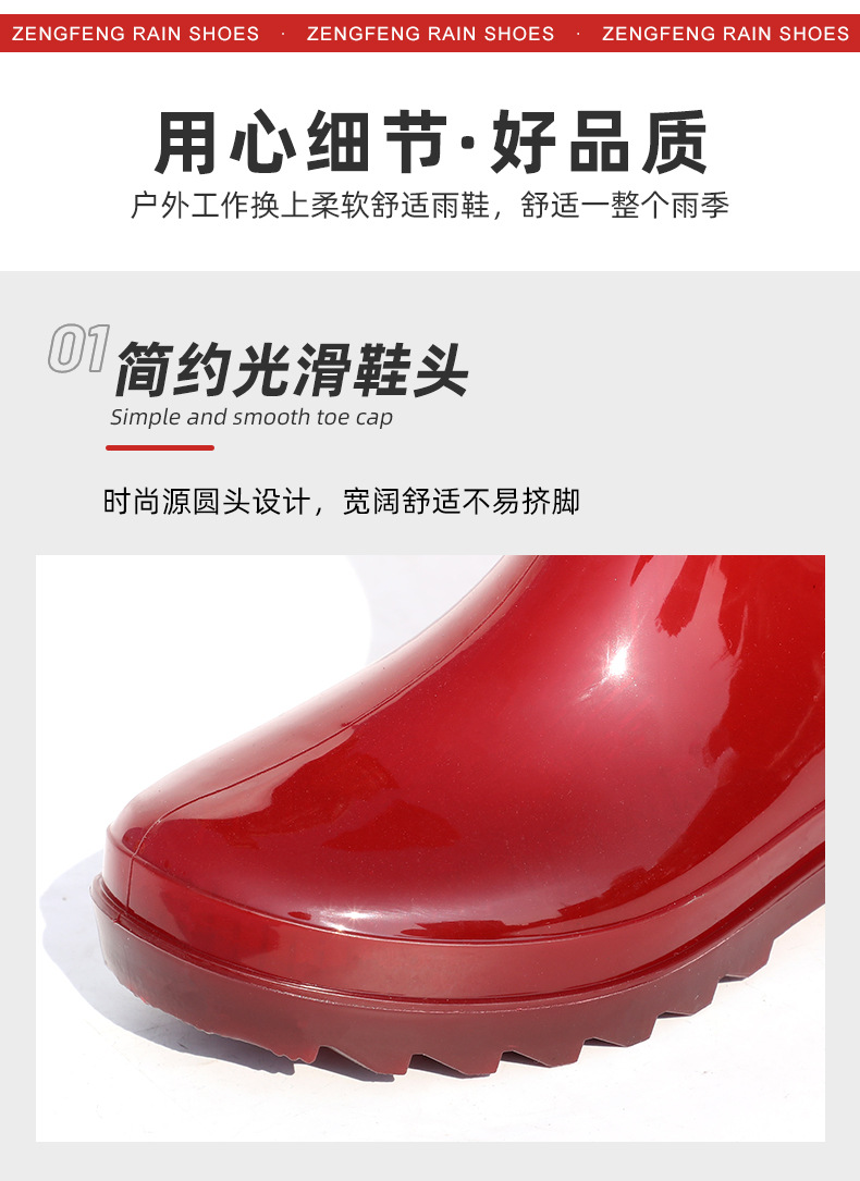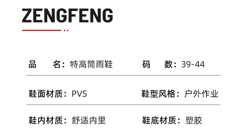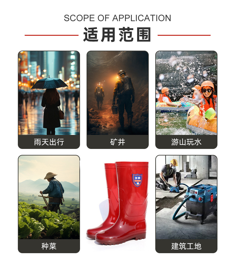 增峰男士水鞋防滑工地劳保水靴PVC耐磨高筒雨靴男户外工作靴批发