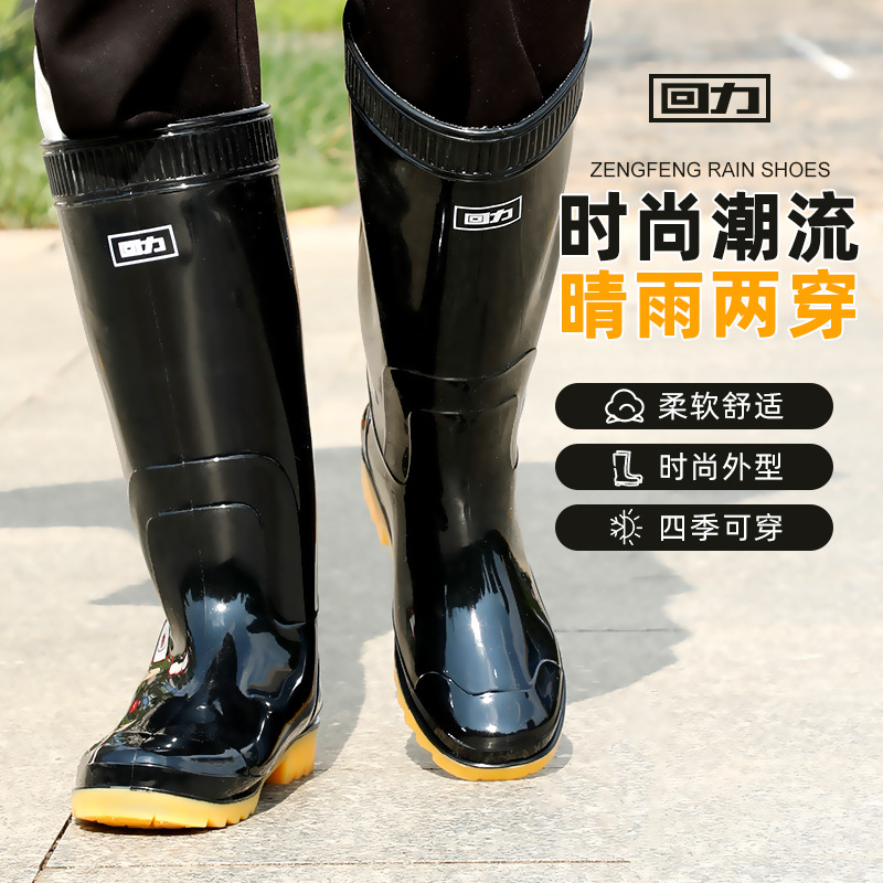 上海回力雨鞋807高筒雨靴男款中帮防水防滑耐磨劳保黑色水鞋批发