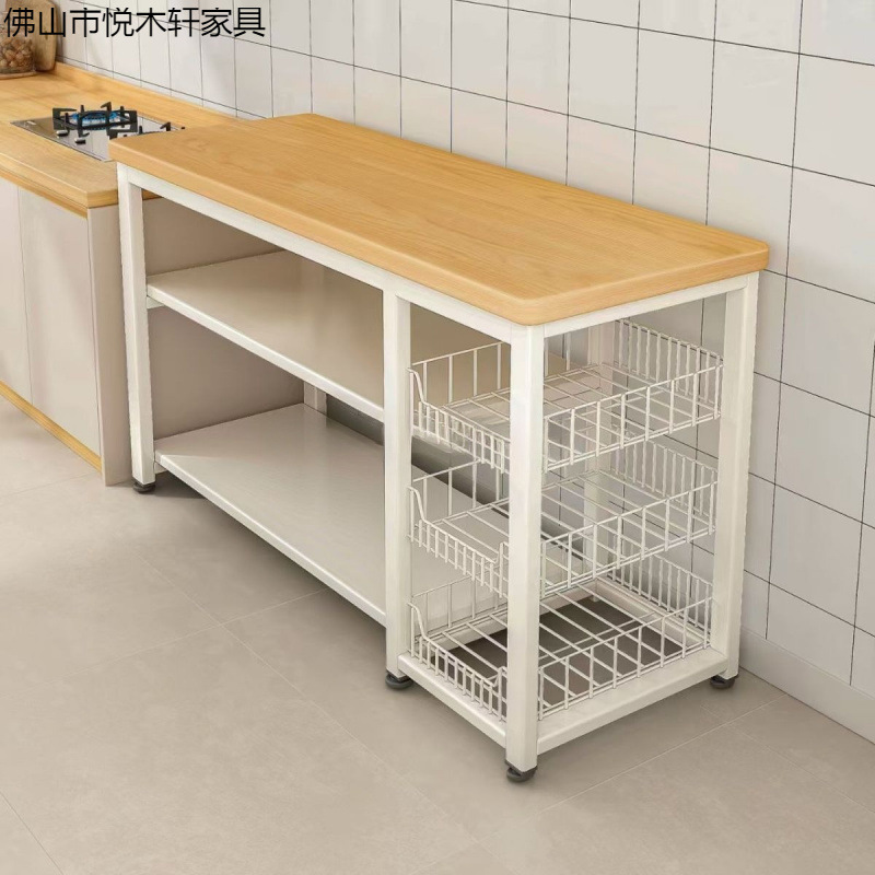 橱柜餐边柜多功能置物架菜篮子切菜工作台收纳架带门边柜多层桌子