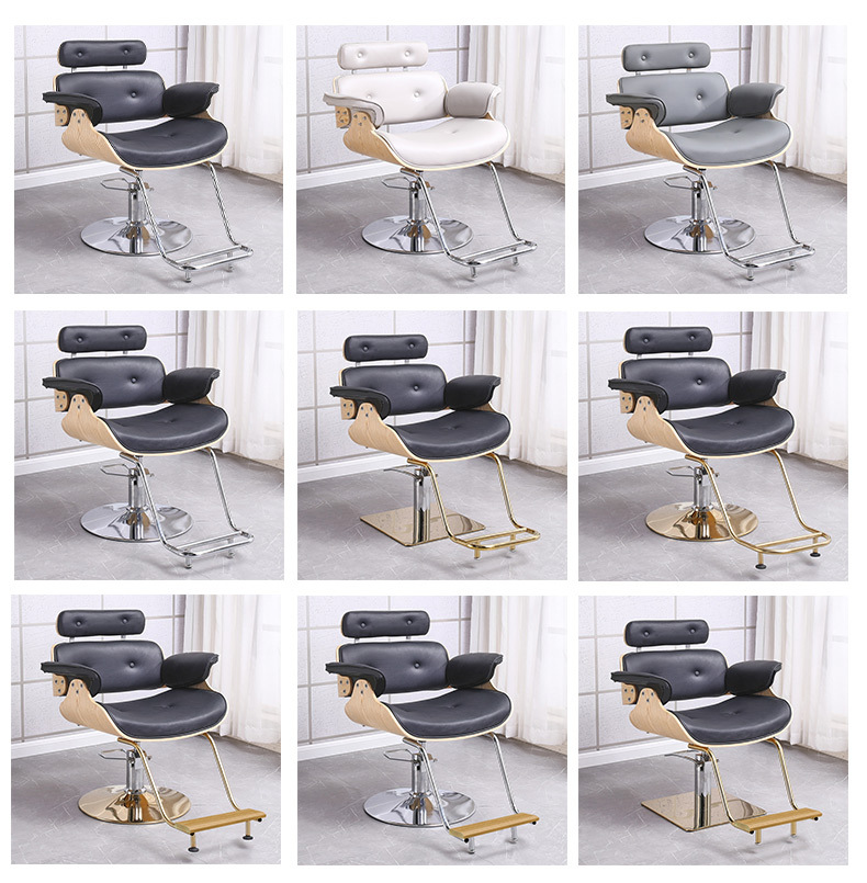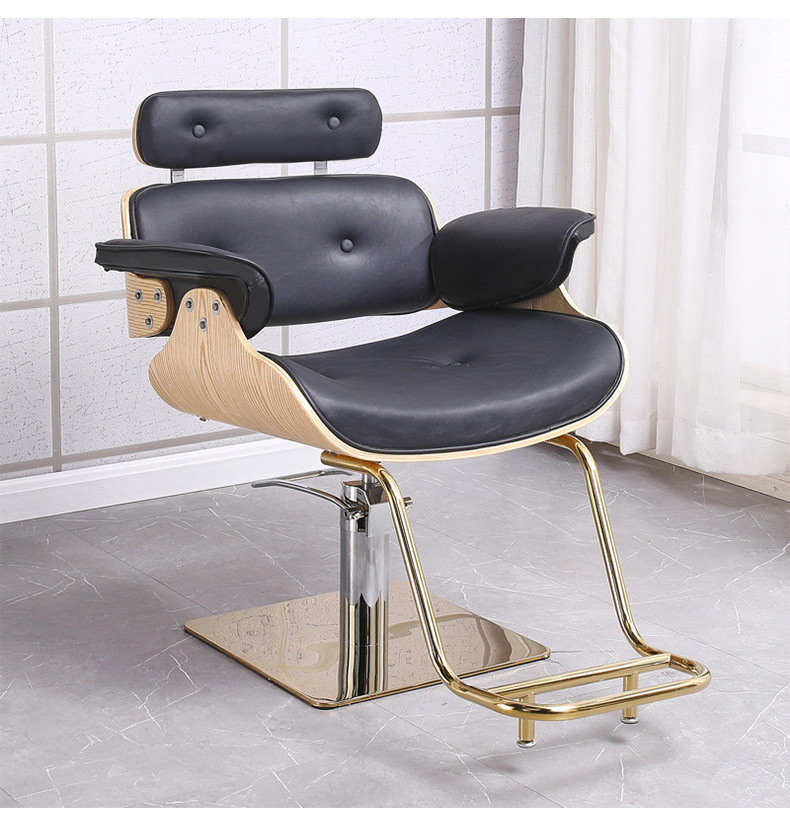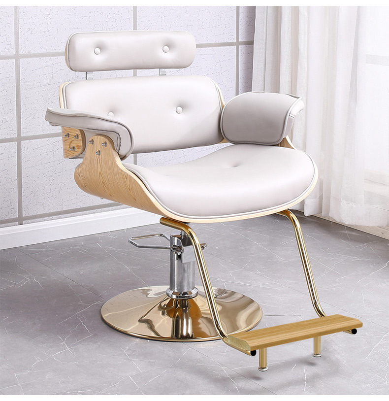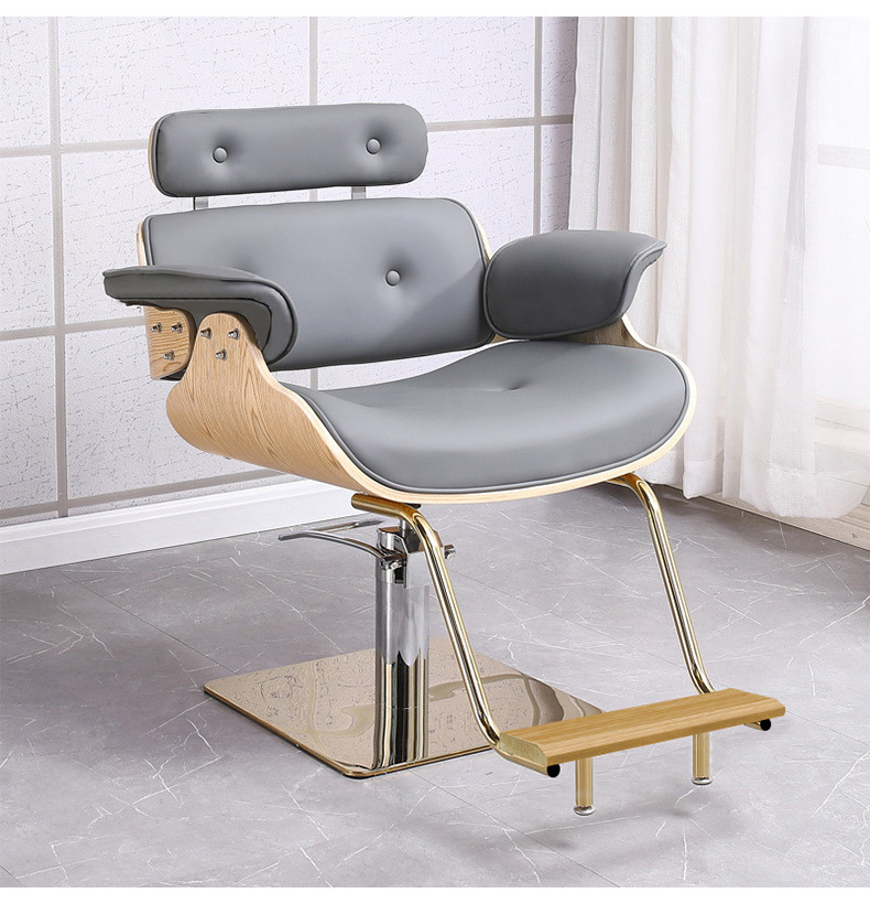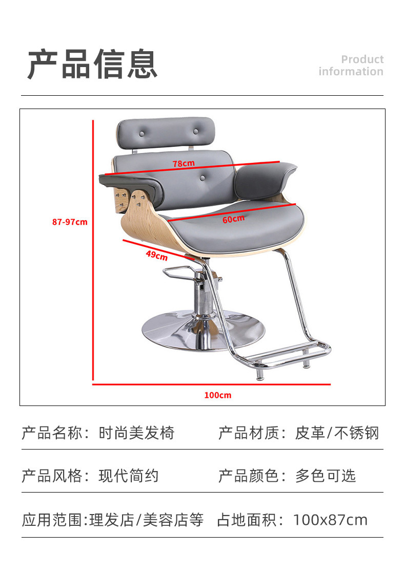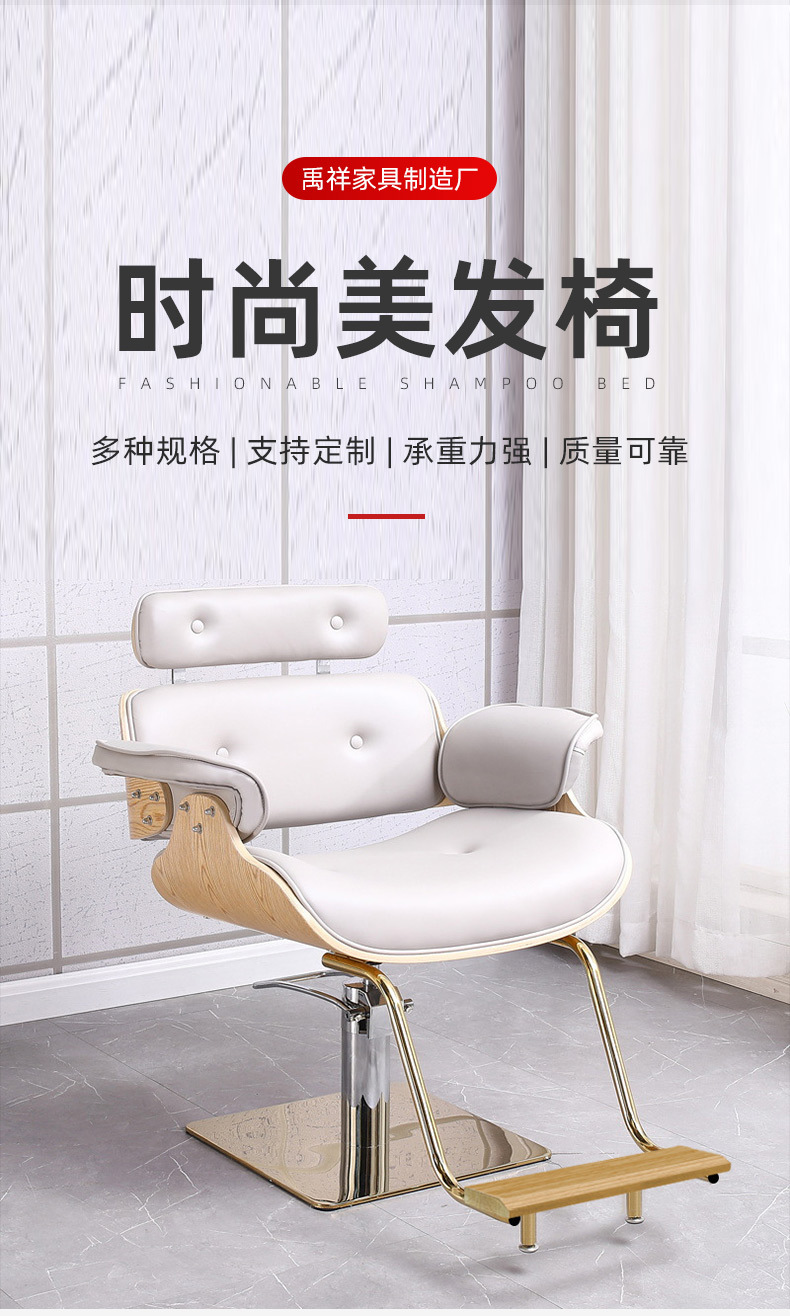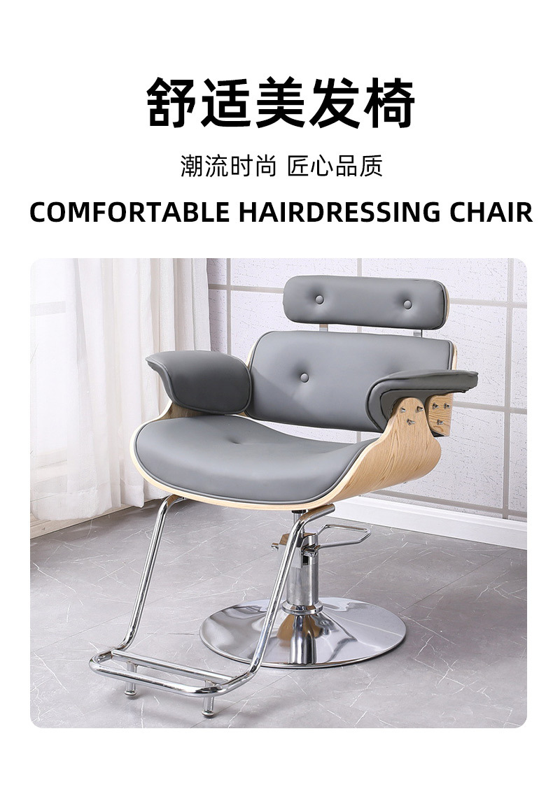 发廊同款美发椅圆盘不锈钢脚踏沙龙理发椅可升降方盘带脚踏理容椅