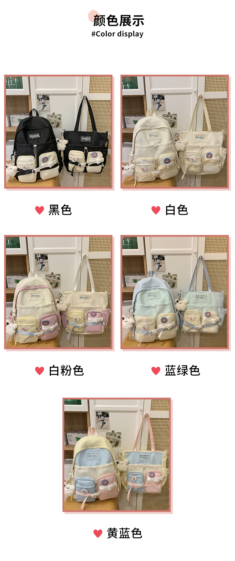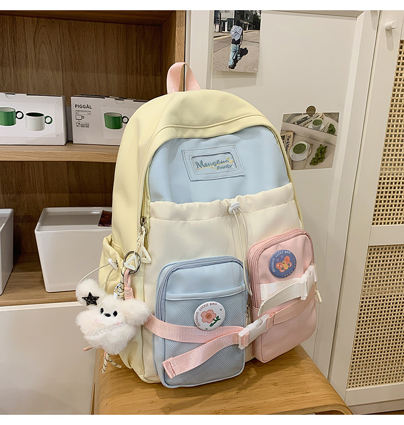 甘い女の子のカラーブロックバックパック、小清新文学中学生スクールバッグ、女性韓国風大容量バックパック