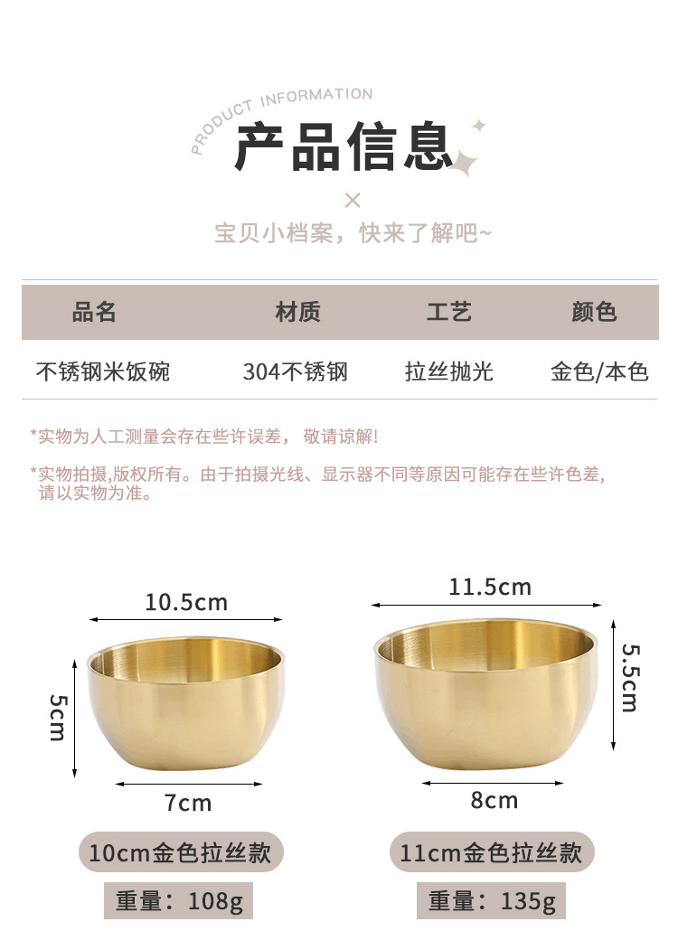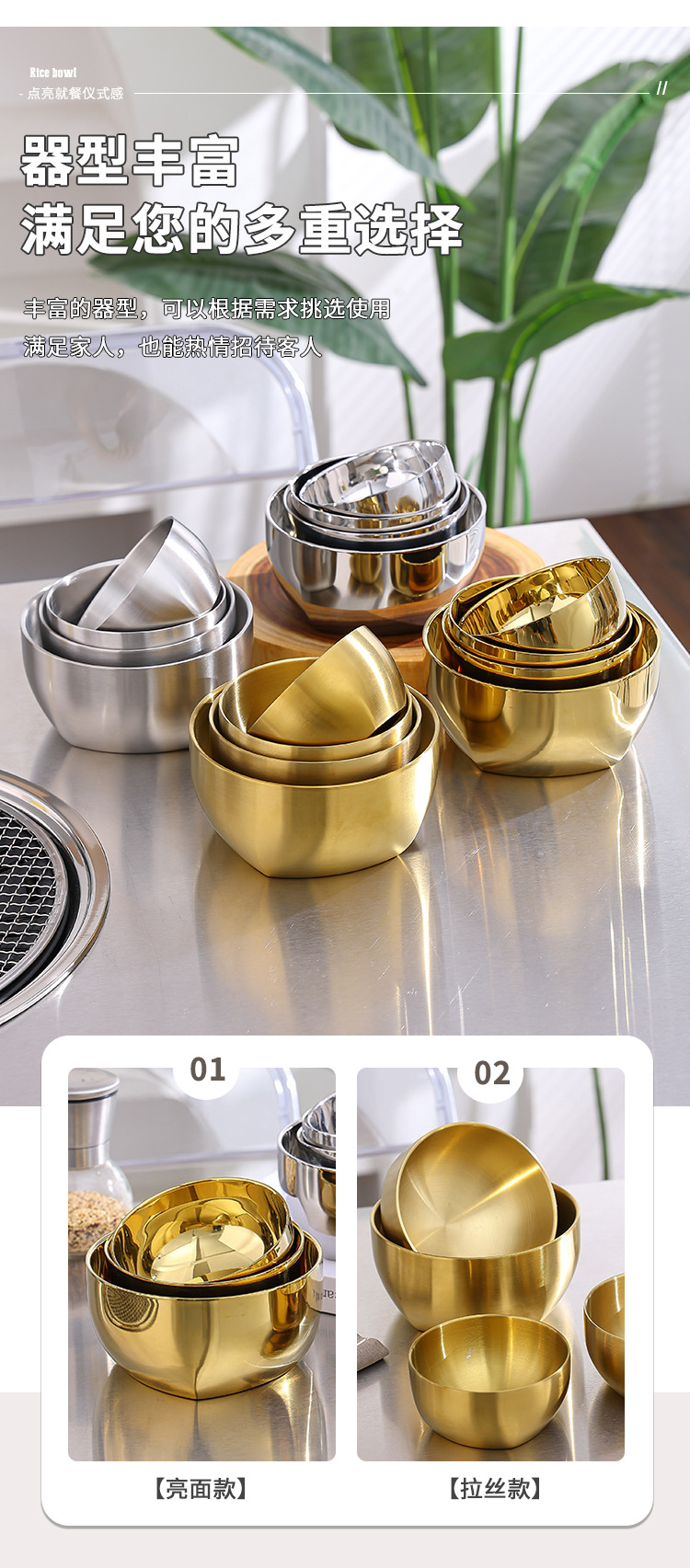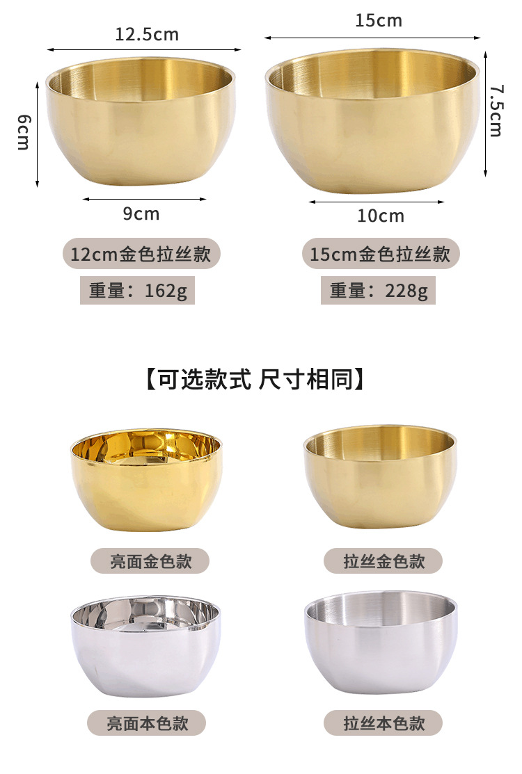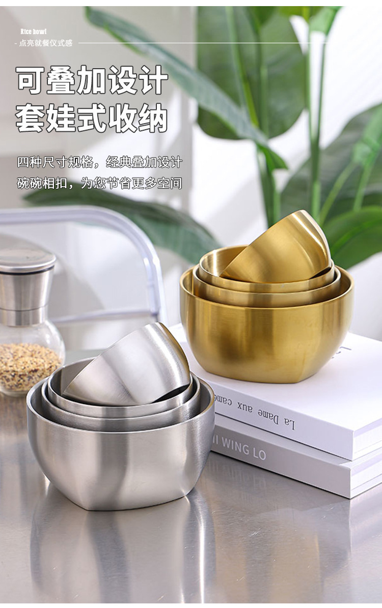 韩式304不锈钢米饭碗双层防烫汤碗儿童吃饭碗商用金色碗定制logo