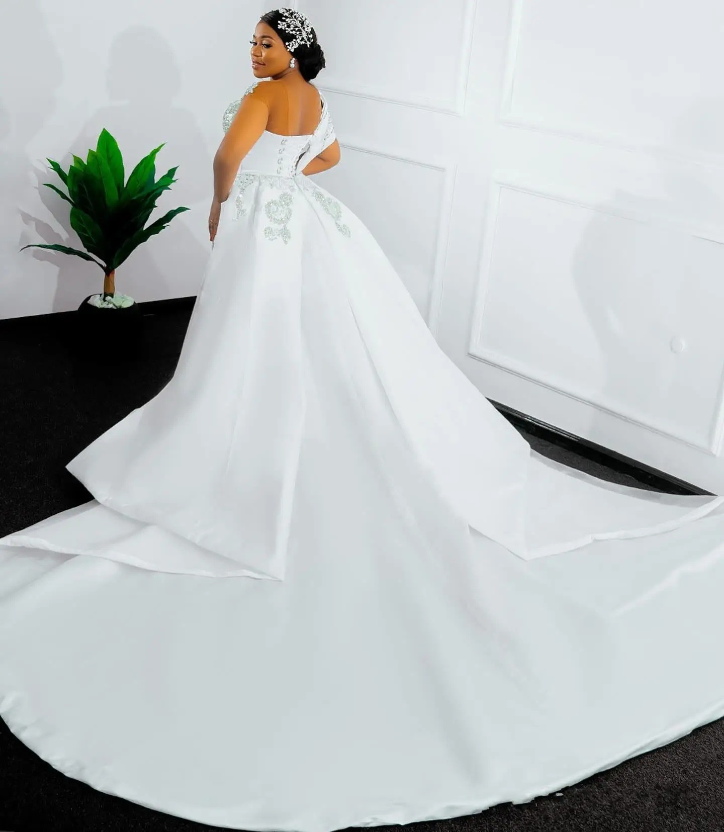 フィッシュテールウェディングドレス アフリカの花嫁 ワンショルダーレース 2025年新作 クロスボーダー Amazon 長袖ドレス トレーン付き