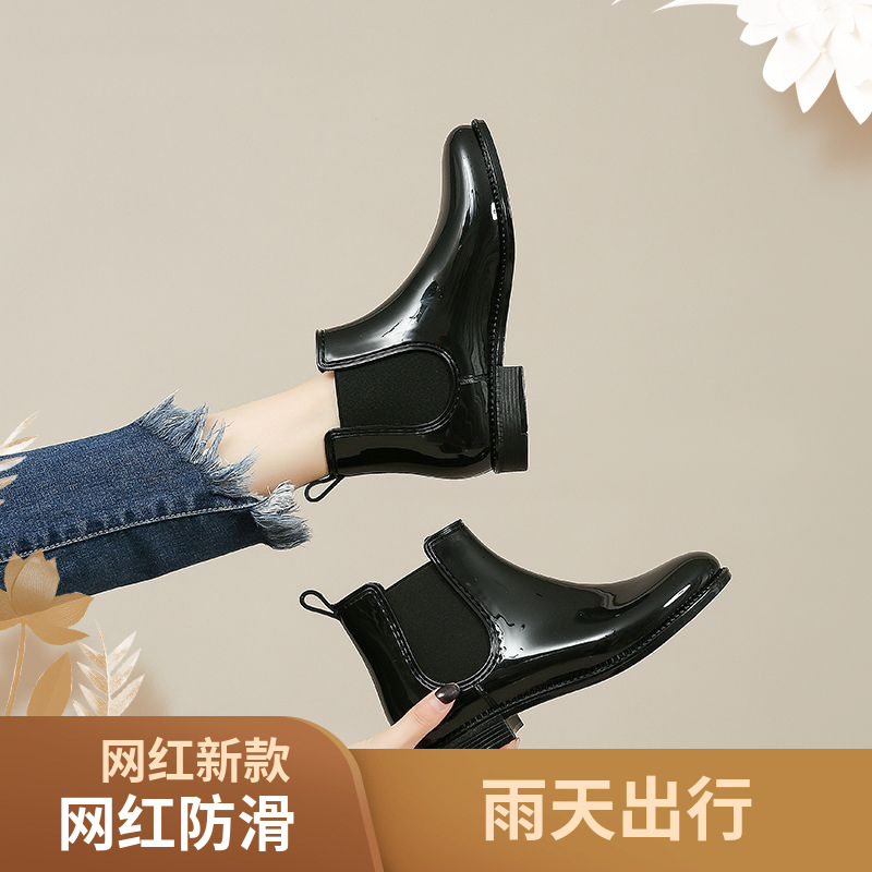 インターネットセレブレインブーツ女性用滑り止め靴カバー新しい防水靴女性用ソフトソール防水厚みのある耐摩耗性ゴム靴女性用ショートレインブーツ