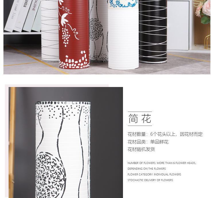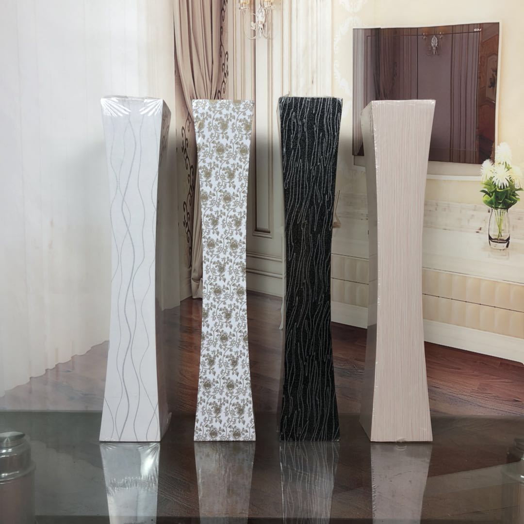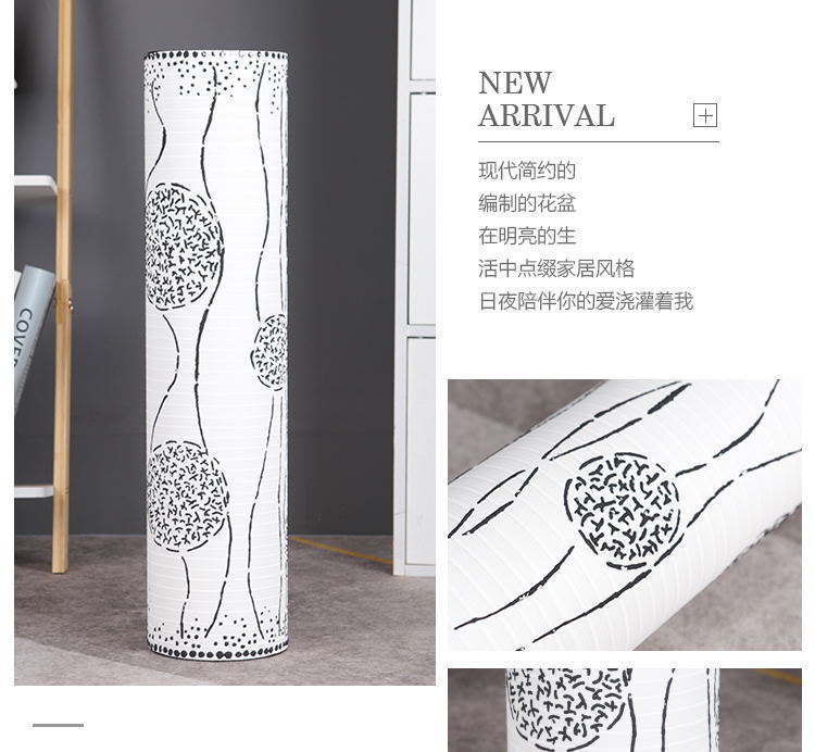 床に落ちた大きな花瓶の高さはシンプルで、水培プラスチックは陶磁器の白い黒とヨーロッパ式の家庭の乾いた花の生け花の客間の装飾をまねます。