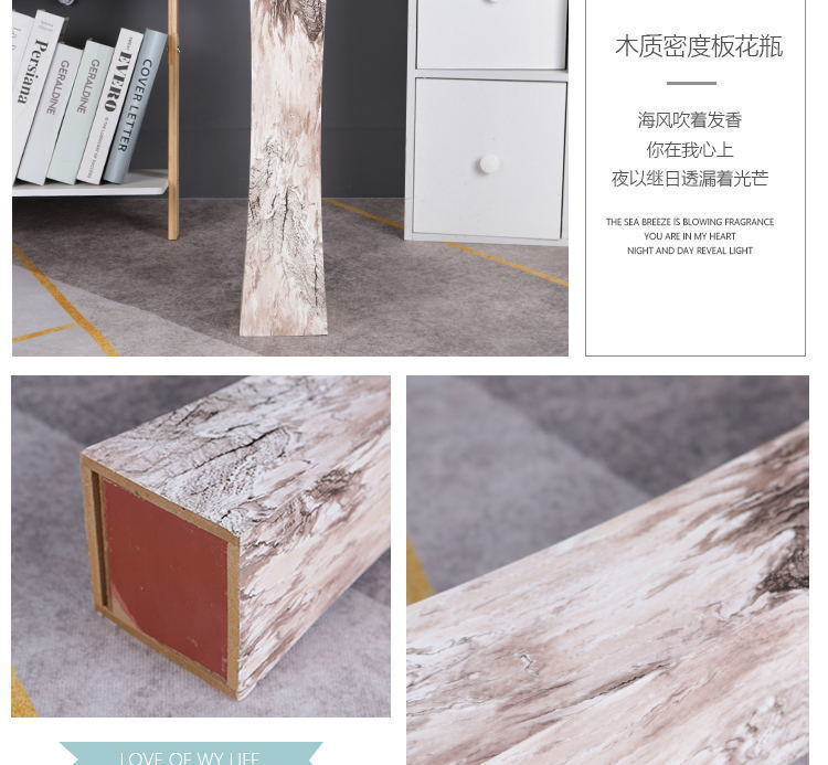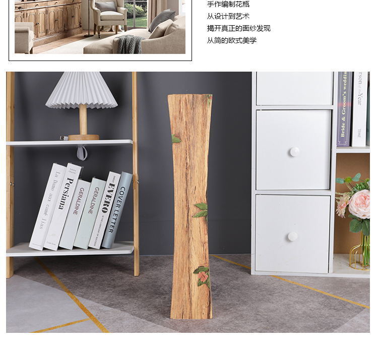 欧式现代时尚干花木质落地花瓶大插花居家摆设大花器客厅