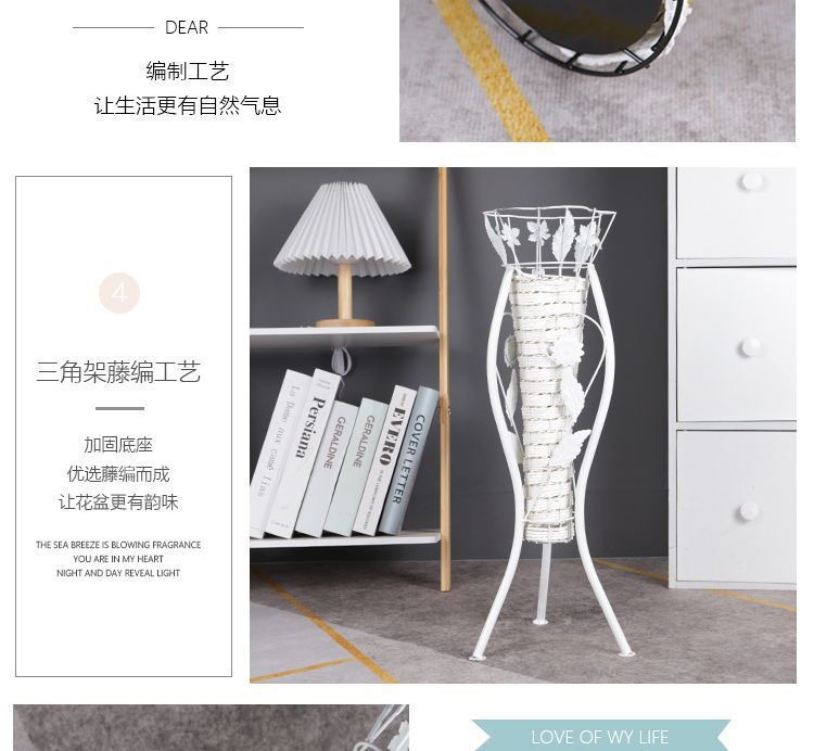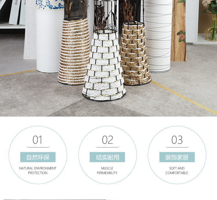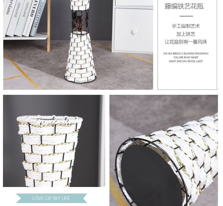 籐と鉄のシンプルな大型床置き造花リビングルームフラワーベースドライフラワー床置き樹脂ストレート花瓶装飾装飾品