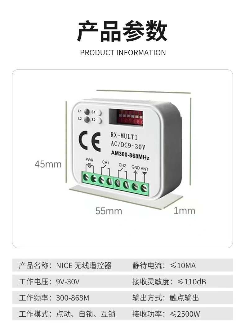 NICE ワイヤレスリモコン多周波受信機 250MHZ-913MHZ リモコン電動ドア専用