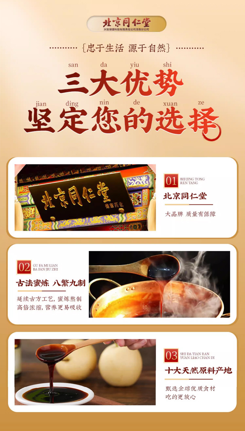 北京同仁堂秋梨膏 子供と高齢者向け滋養手作り枇杷雪梨膏 純梨膏 卸売・配送