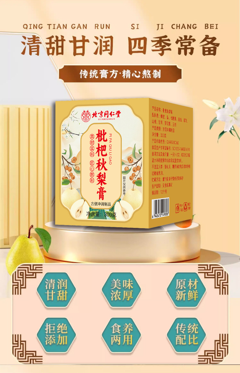 北京同仁堂ビワ秋梨膏卸売り源源古法蒸し300グラムビワ秋梨膏