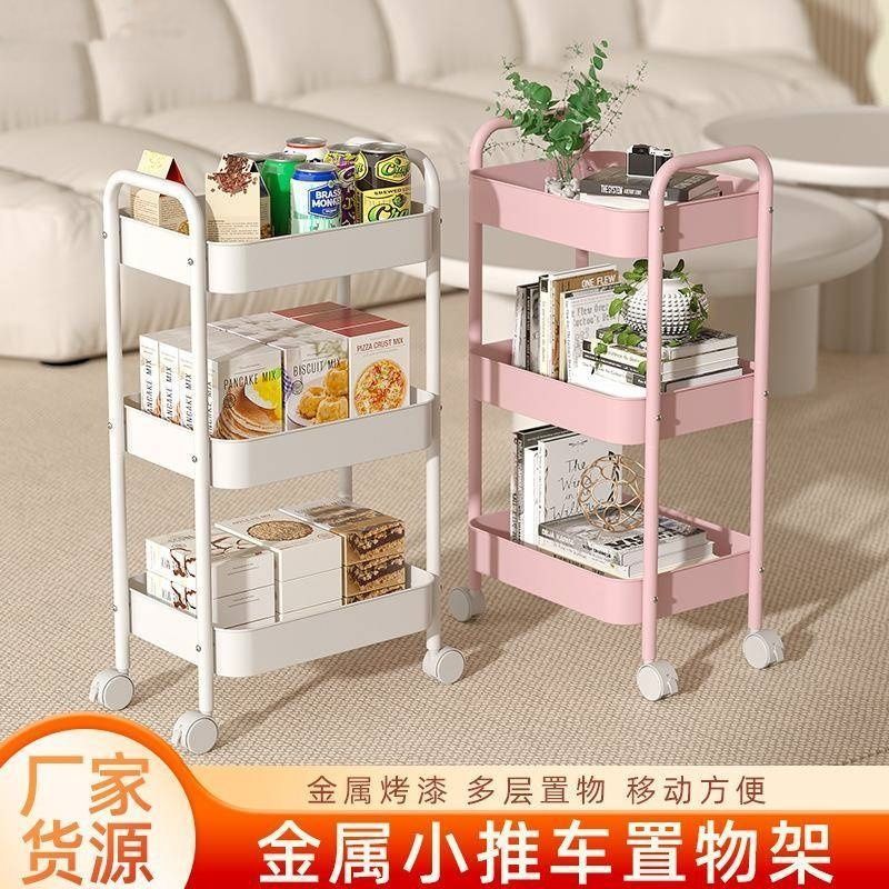 小推车置物架家用零食落地多层客厅收纳书架移动厨房果蔬菜篮架子