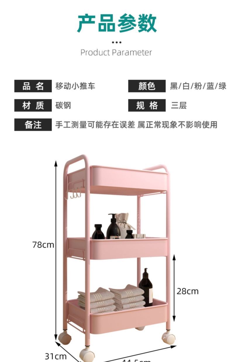 小推车置物架家用多巴胺收纳架可移动多层客厅零食架卧室储物架