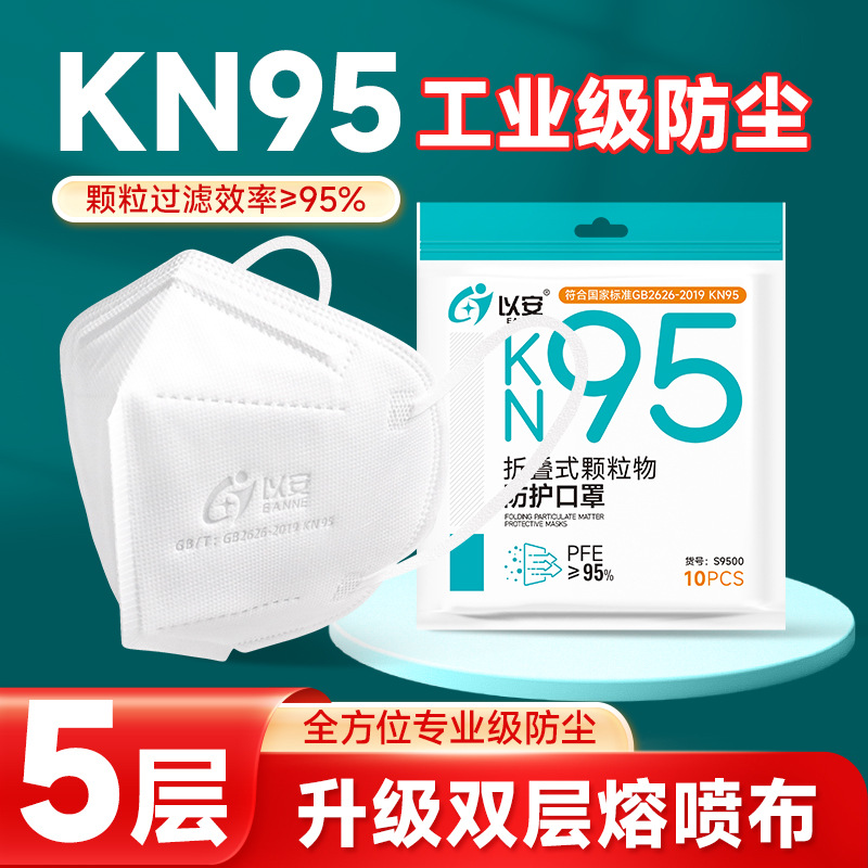安KN95使い捨て防塵マスク3D立体工業用5層保護通気性折りたたみマスク
