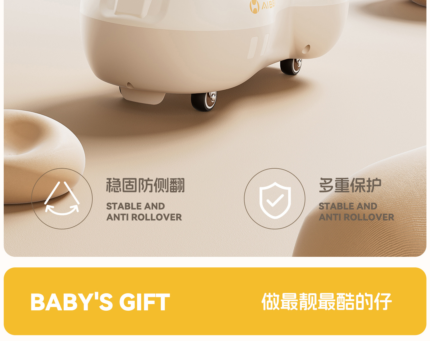 子供の落花生の車の赤ちゃんは子供の滑車の赤ちゃんの1歳のプレゼントの男女の赤ちゃんの散歩の子供の横転を防ぎます。