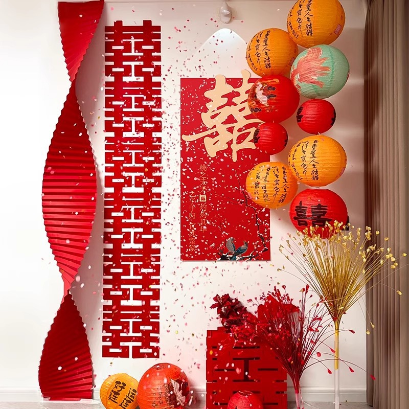 婚房布置套装女方房间背景墙面装饰结婚男方新房客厅卧室拉花喜字