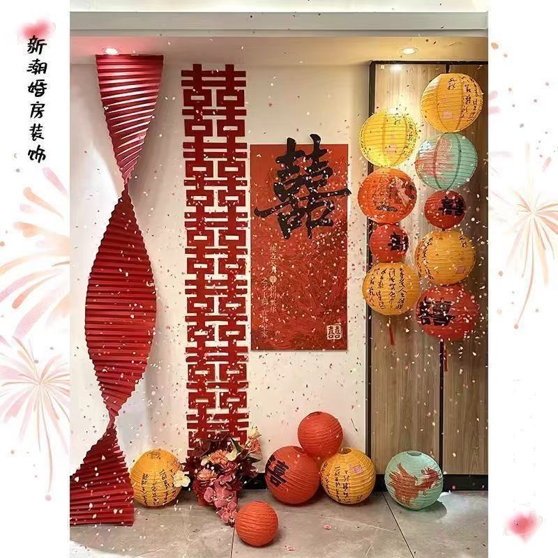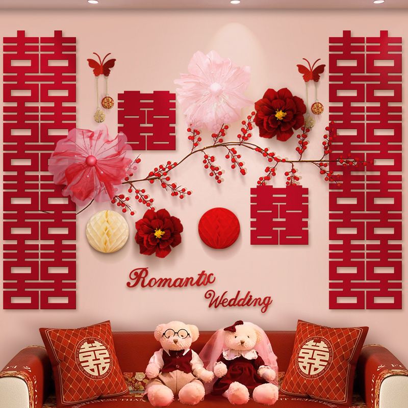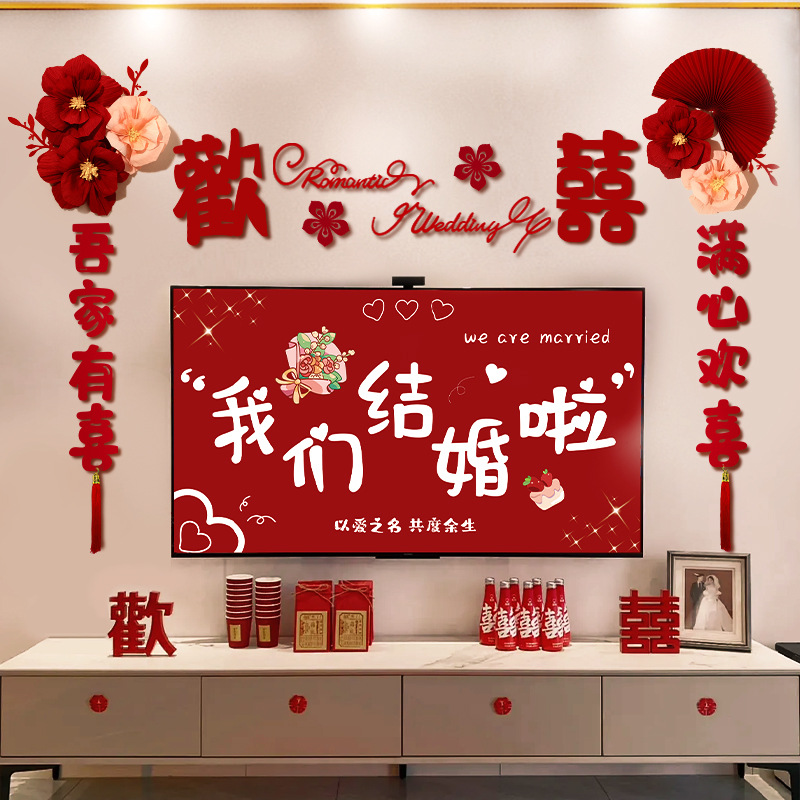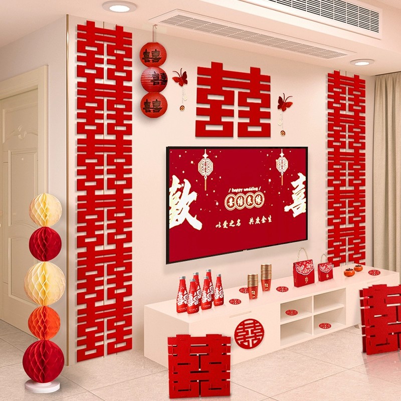 婚房装饰套装电视背景墙结婚布置喜字中式婚礼创意男女方客厅卧室