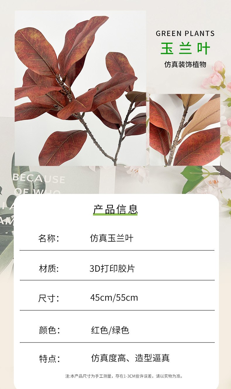 仿真玉兰叶摄像道具仿真花家居软装婚庆摆件仿真园艺绿植