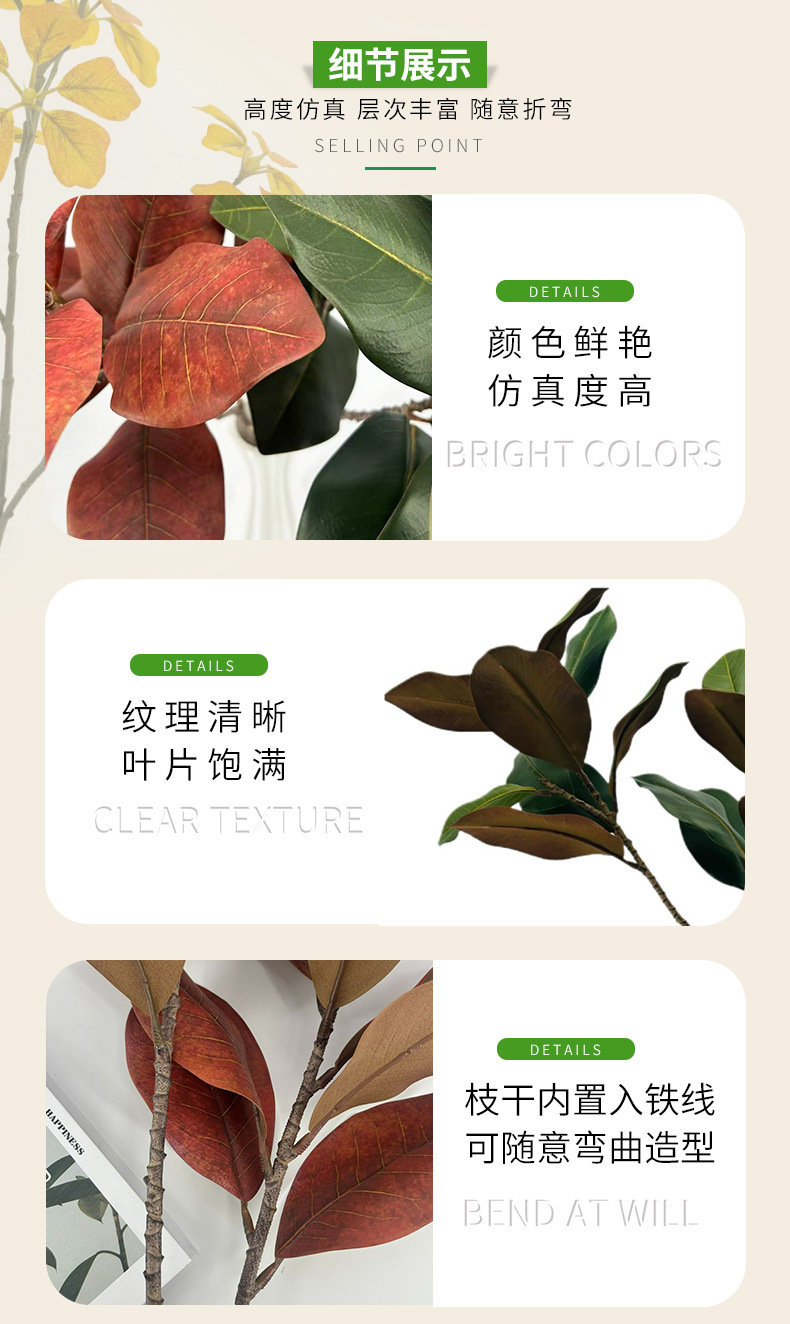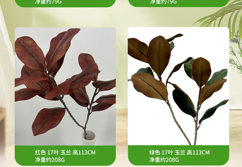 仿真玉兰叶玉兰花树树枝仿真植物叶子家居婚礼装饰插花花材玉兰枝
