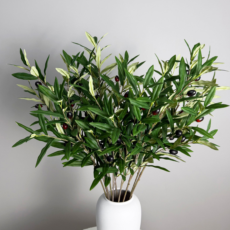 3叉4叉毛布橄榄枝带果加密橄榄叶仿真绿植花店婚庆酒店植物装饰