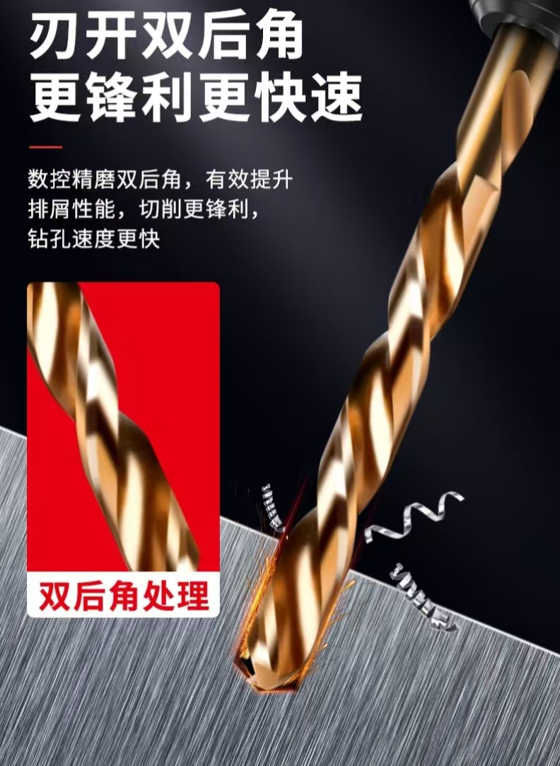工業用ツイストドリルセット、ダブルU型屑排出、詰まりにくい、木材、アルミニウム、銅などの穴あけに適したドリルビット、効率的な屑排出