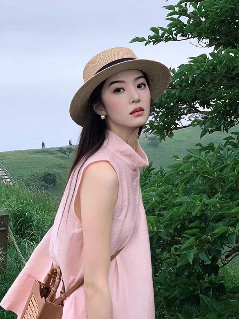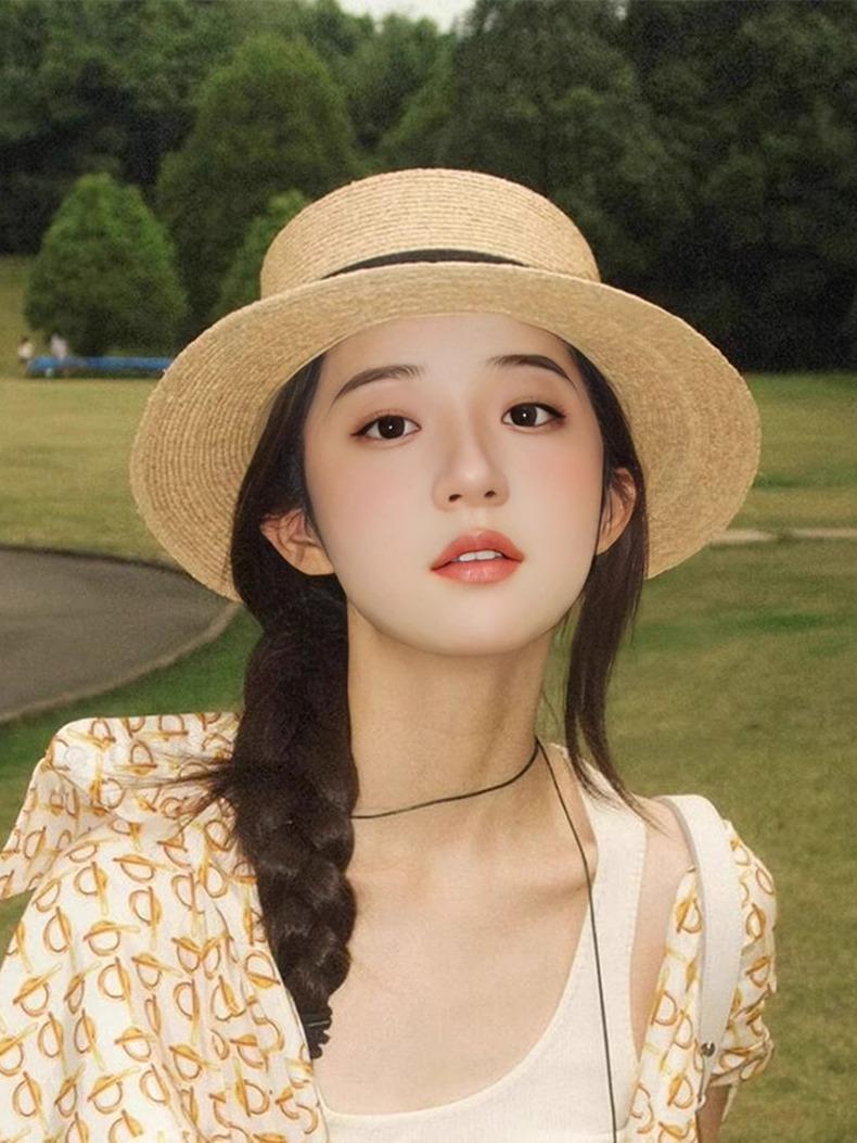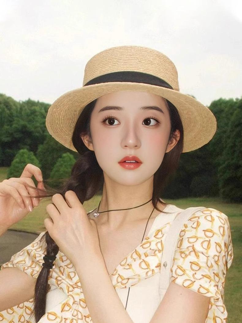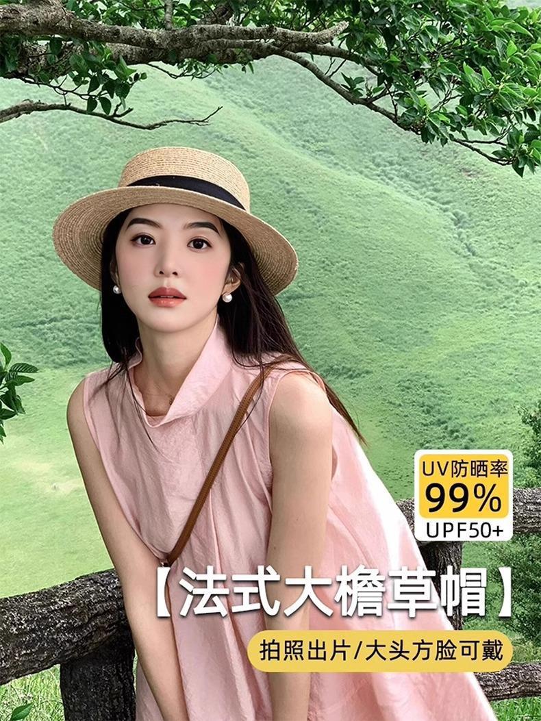 女性用フレンチフラットトップハット、大きな頭囲、平らなつば、海辺のビーチ休暇用ハット、大きいサイズの織りハット