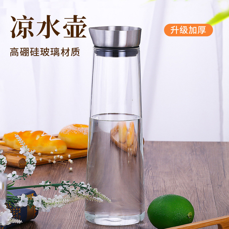 创意北欧凉水壶不锈钢盖家用大容量果汁冷水壶高硼硅玻璃凉水壶