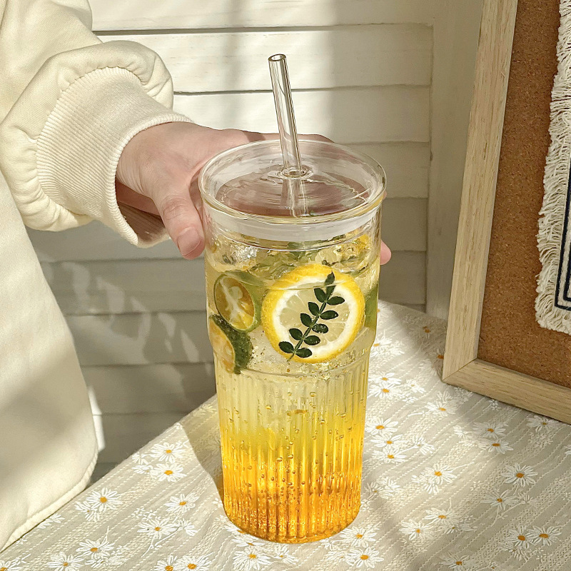 大容量ストローガラスカップ、高温耐性家庭用蓋付きコールドドリンクカップ、高価値ミルクティーコーヒージュースカップ
