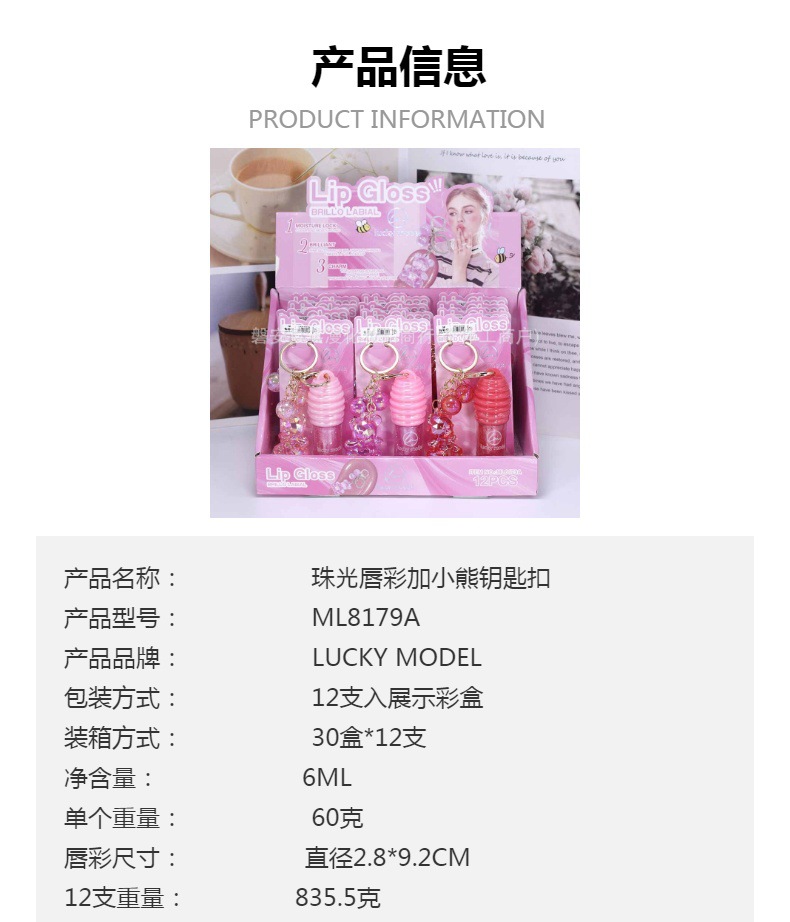 ML8179A珠光滋润唇彩LUCKY MODEL小熊钥匙扣新款shiny lipgloss