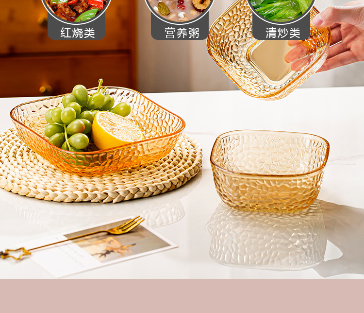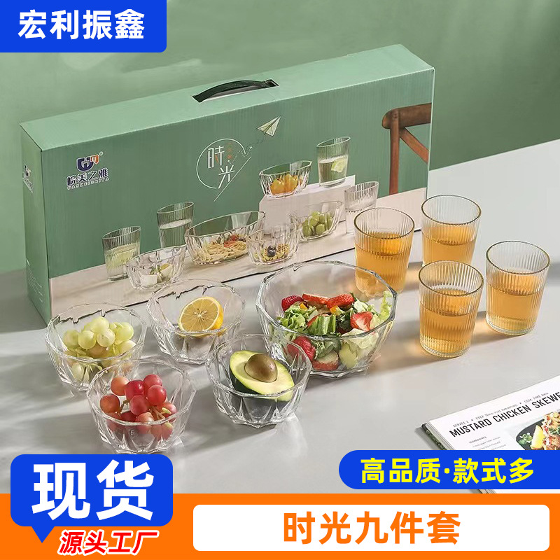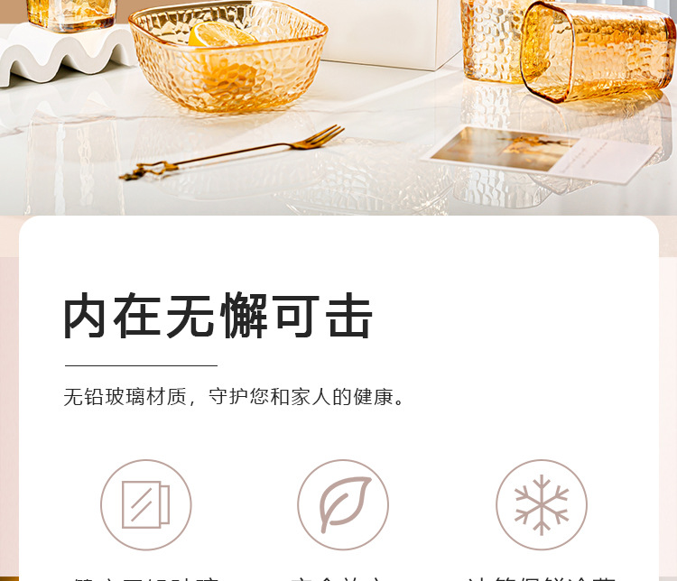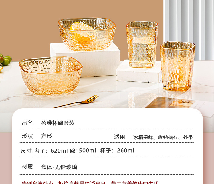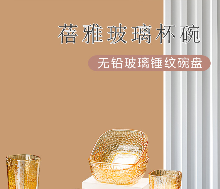 ガラスボウル、プレート、カップ、ギフトプロモーション、槌目ガラスボウル、4点セット、家庭用ウォーターカップ、デザートサラダボウルセット