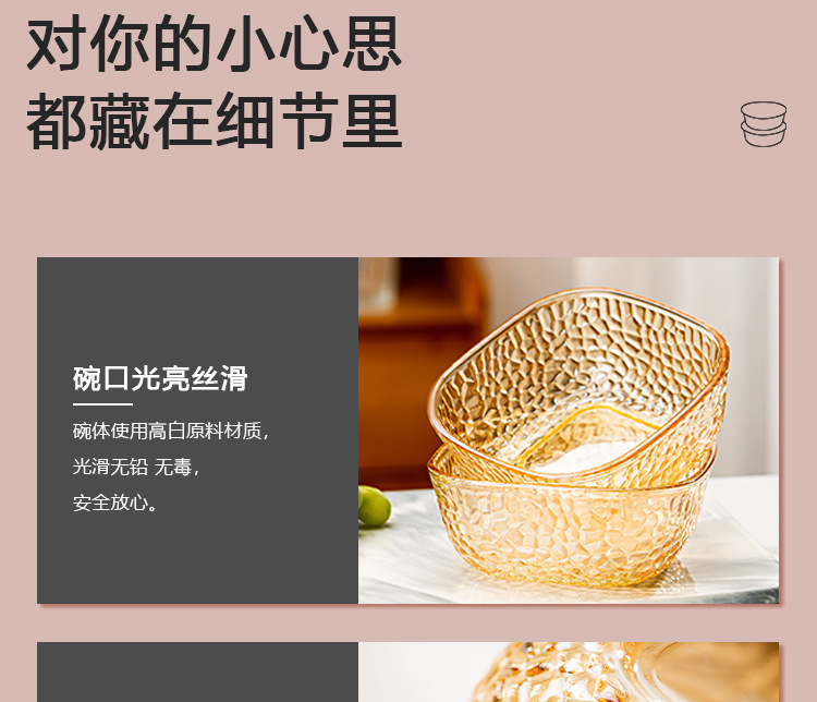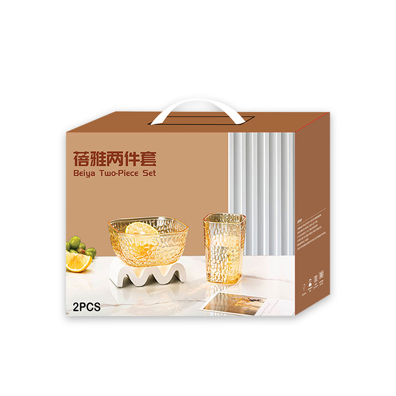 ガラスボウル、プレート、カップ、ギフトプロモーション、槌目ガラスボウル、2点セット、家庭用ウォーターカップ、デザートサラダボウルセット