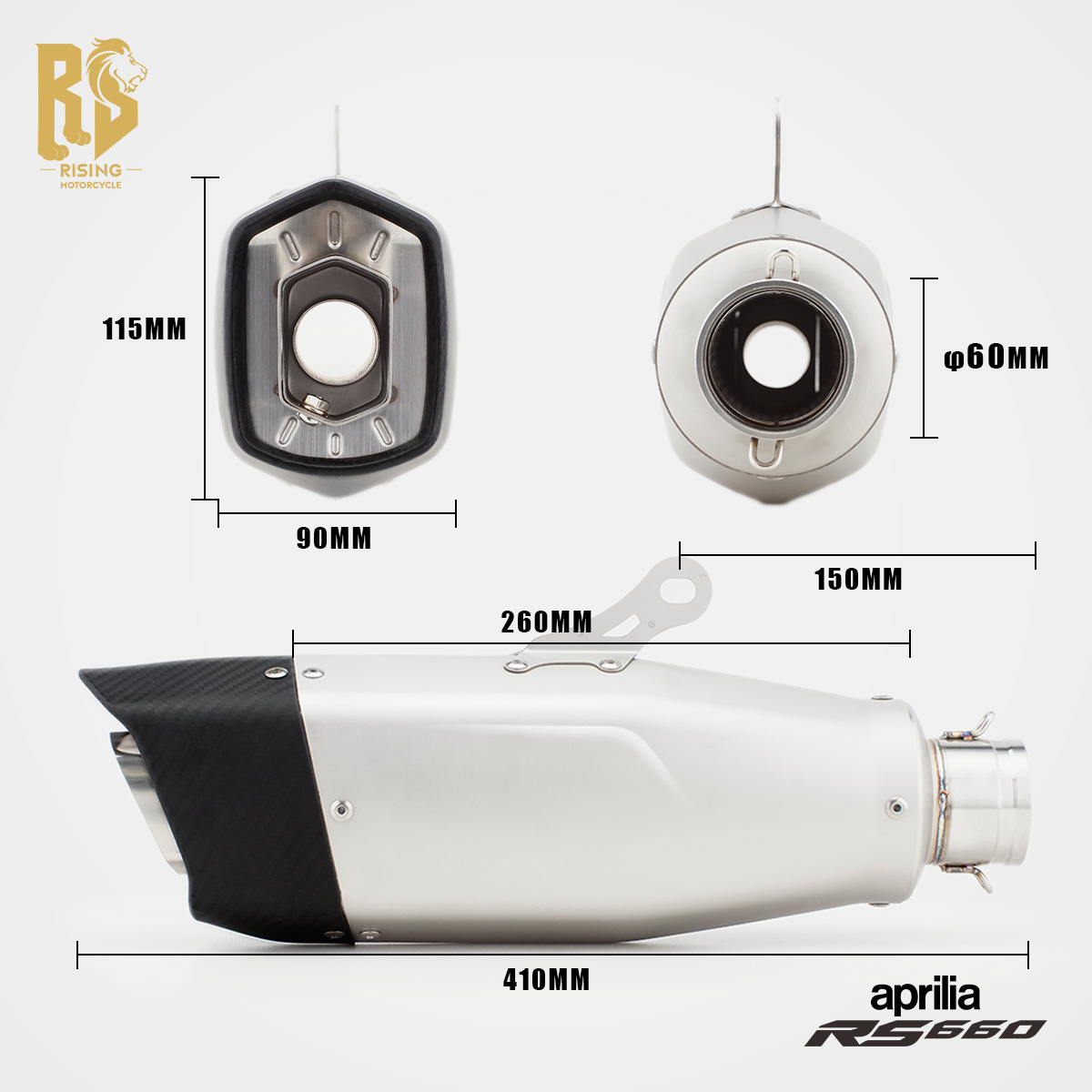 RS オリジナルアプリリア rs660 オートバイ修正排気管チタン合金カーボンファイバーサイド出口フルセクション