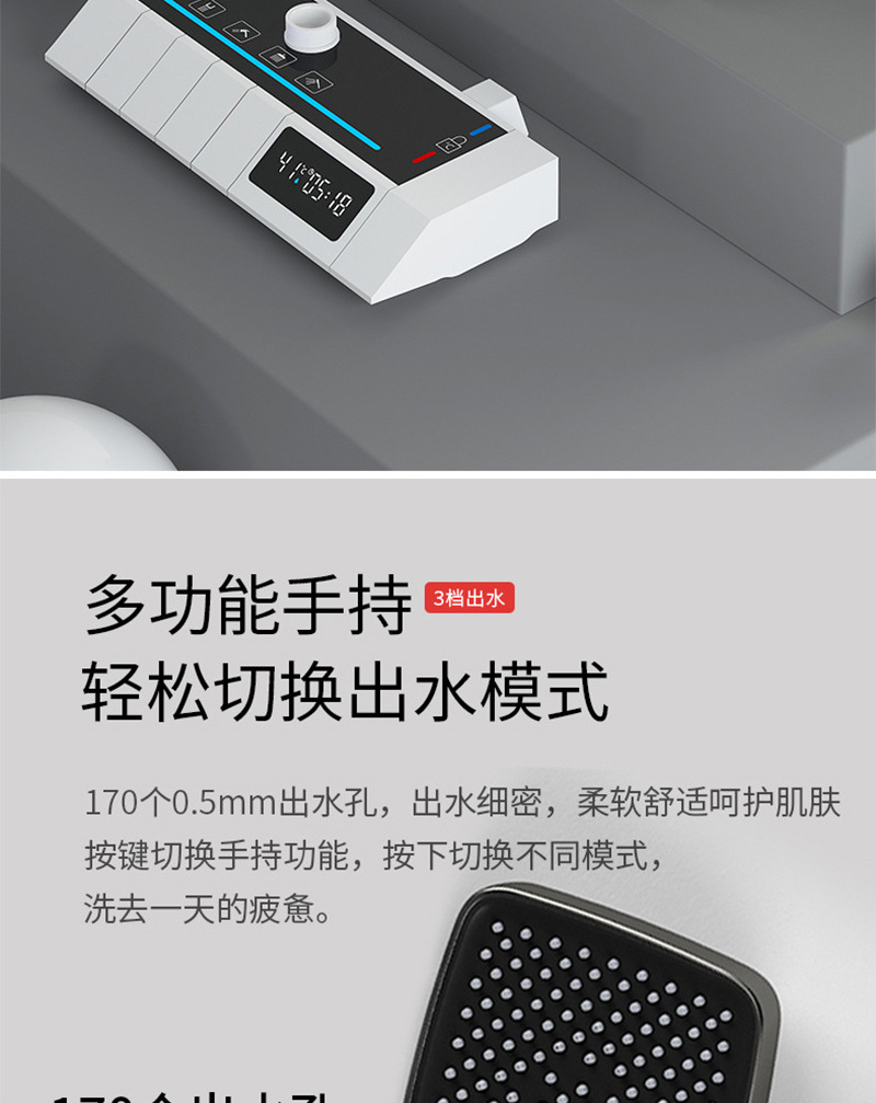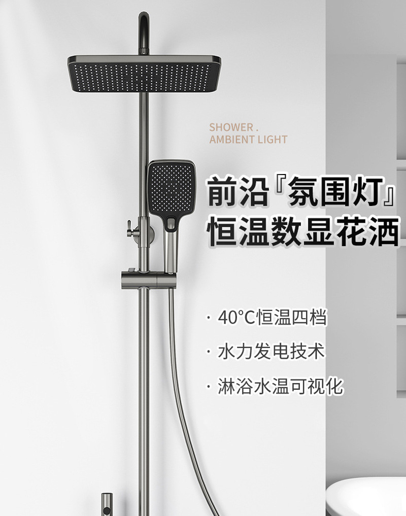 数显氛围灯钢琴键淋浴套装家用花洒加软管增压强力花洒套装一整套