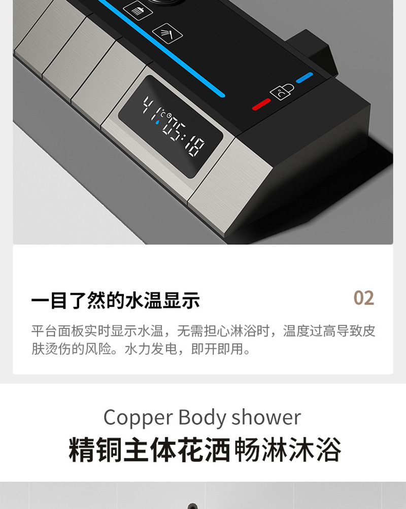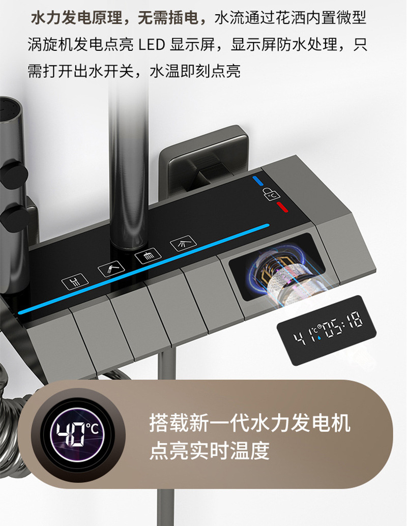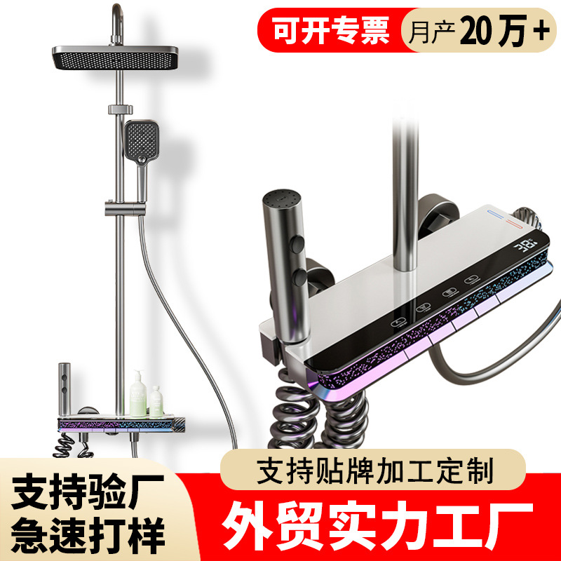 跨境全铜淋浴器花洒套装恒温家用智能数显淋浴琴键花洒全套一整套