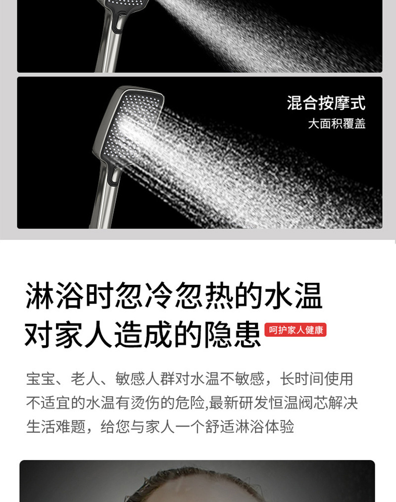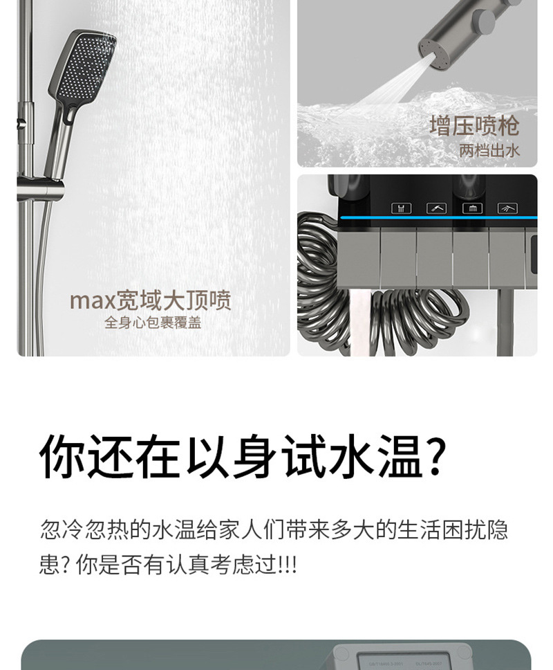 花洒全套一整套钢琴键恒温淋浴枪灰浴室卫生间增压沐浴器暗装批发