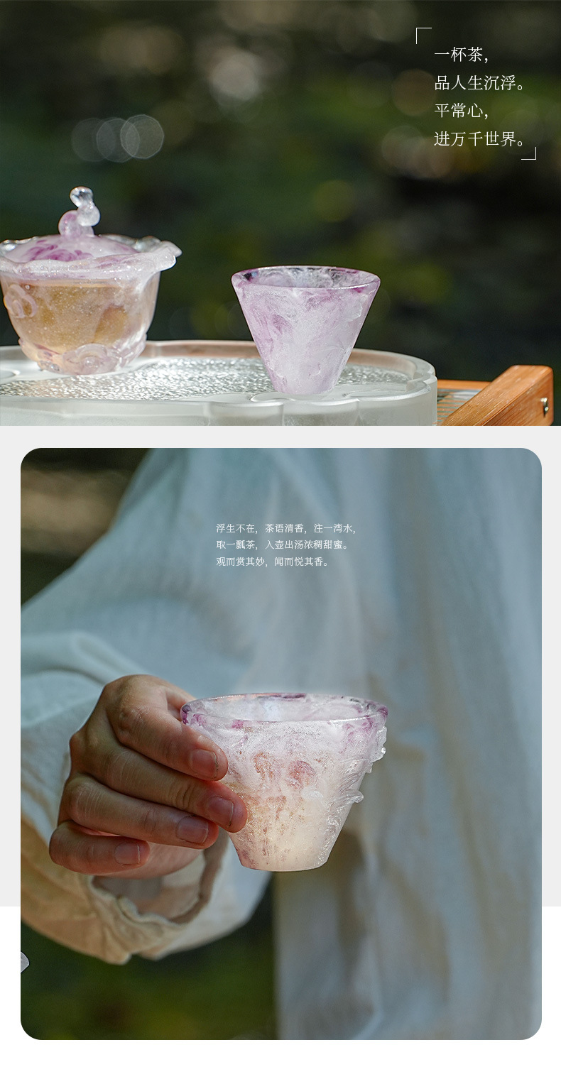 古法琉璃失蜡法粉彩粉烧琉璃茶盏芙蓉花口酒杯子杯垫套装不可开水